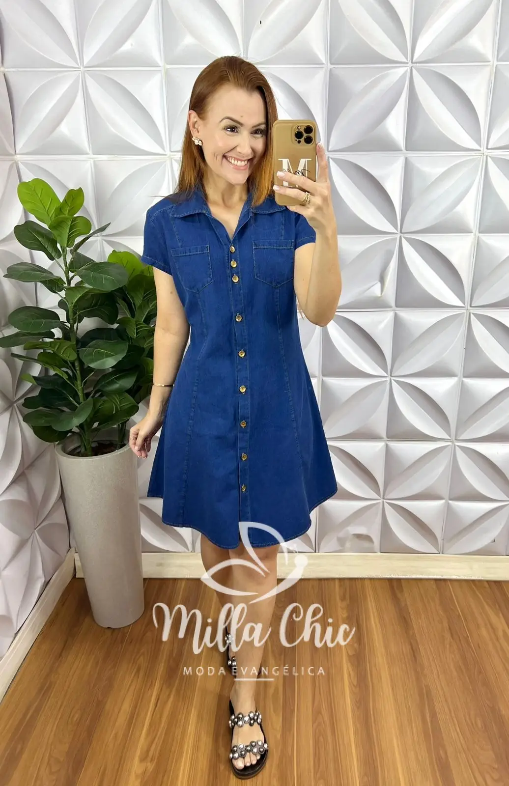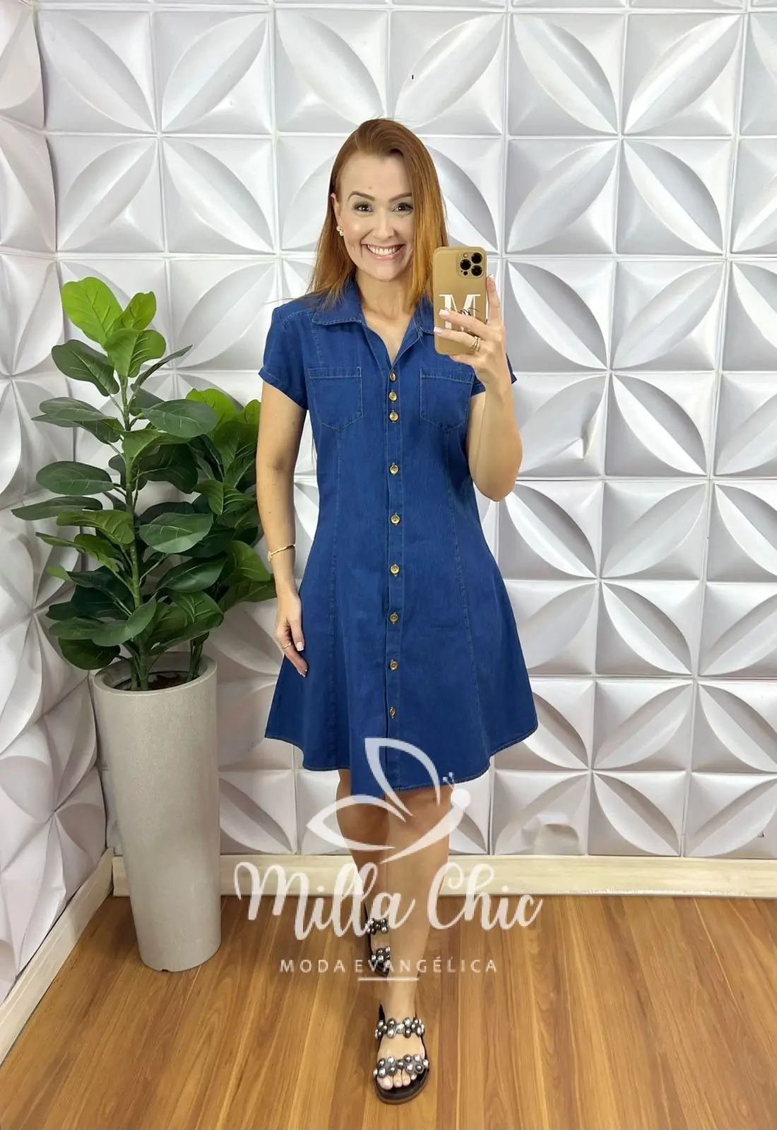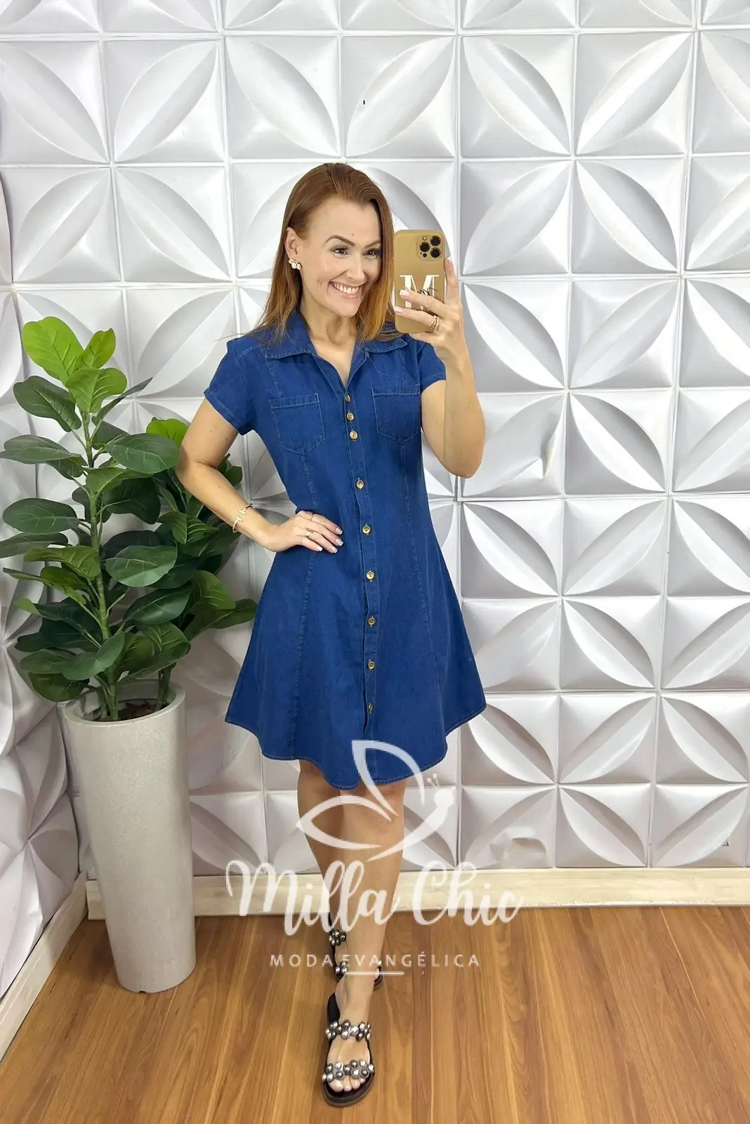 O nosso vestido Dakota é todo confeccionado no jeans . Na proposta em chemise .