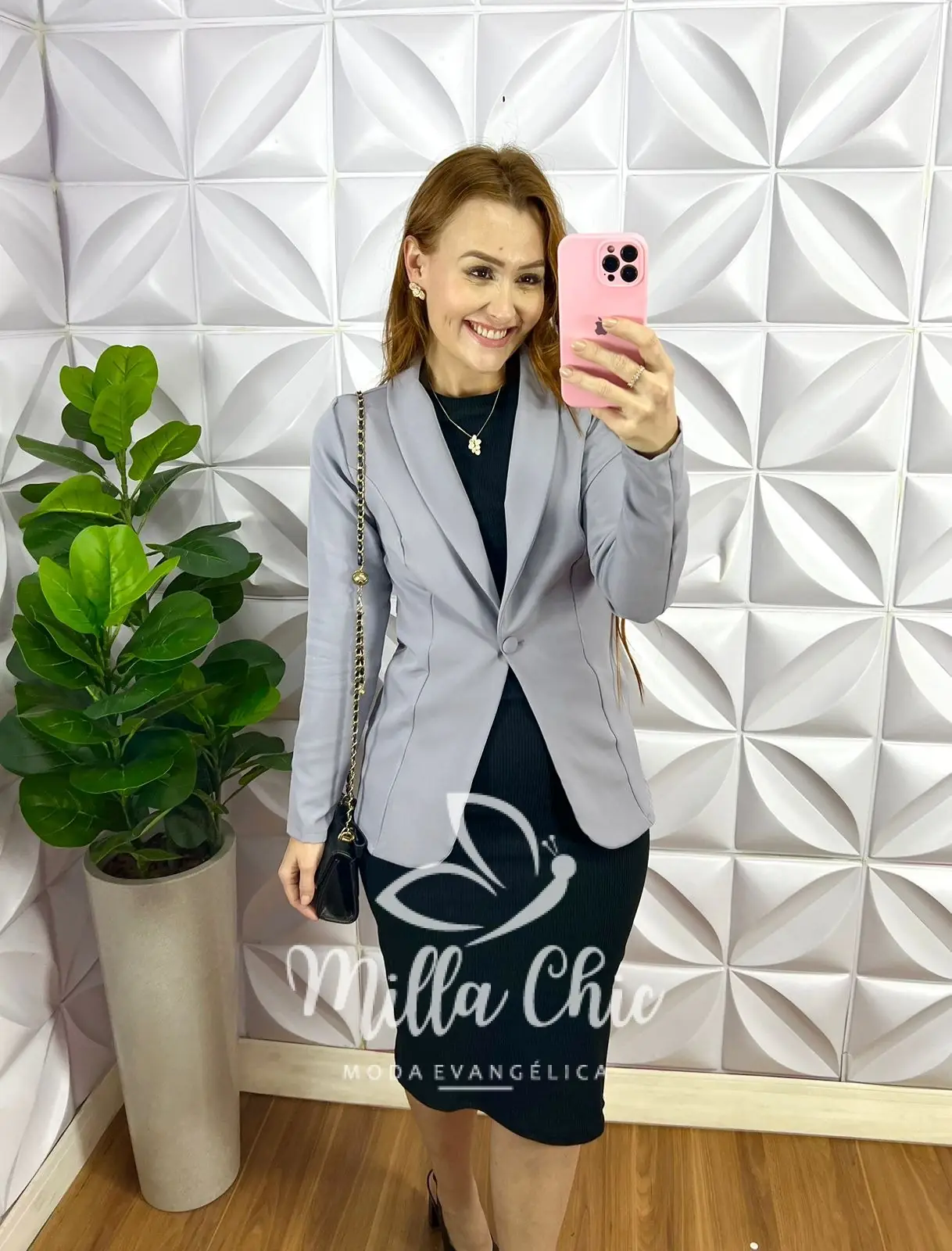 Blazer Alfaiataria Alongado Com Bolso Fabiola - Cinza - Milla Chic