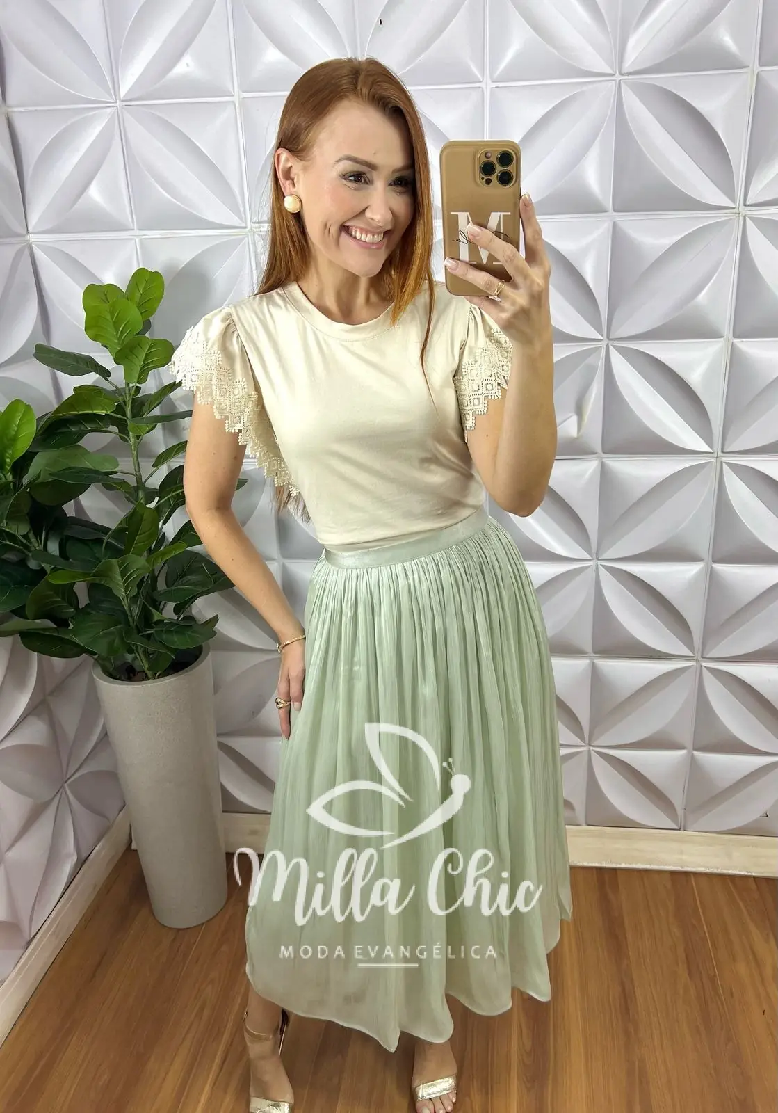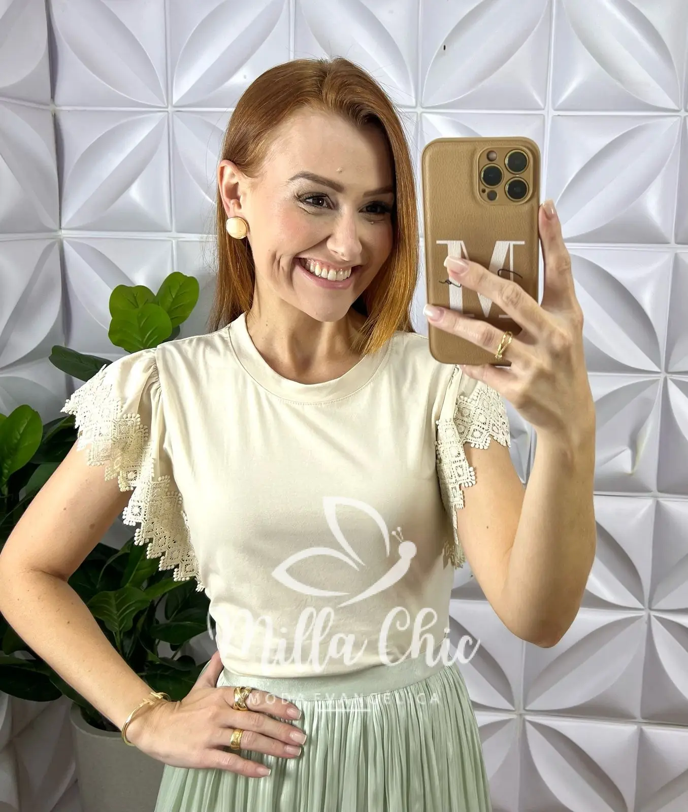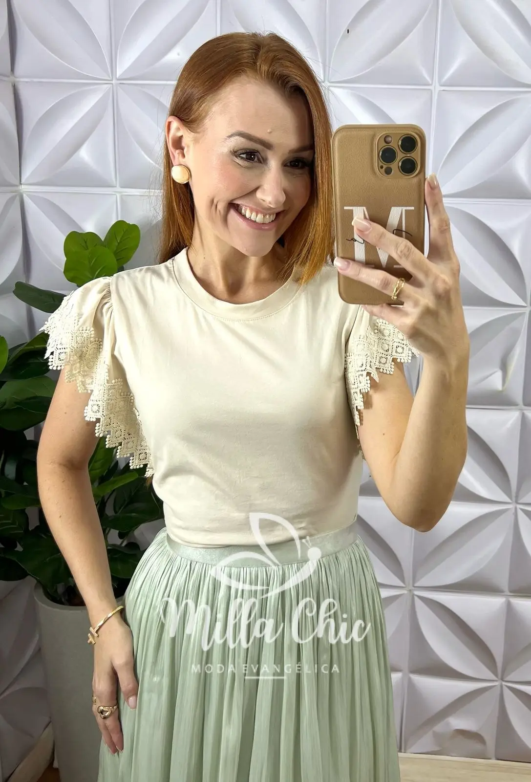 O detalhe que deixa ela maravilhosa é a aplicação na manga em renda guipper . O que deixa ela mais lindona a delicada.