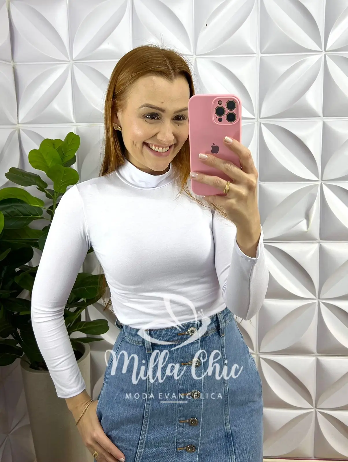 Blusa Cacharrel Viscolycra Gola Alta Baby - Branca - Milla Chic