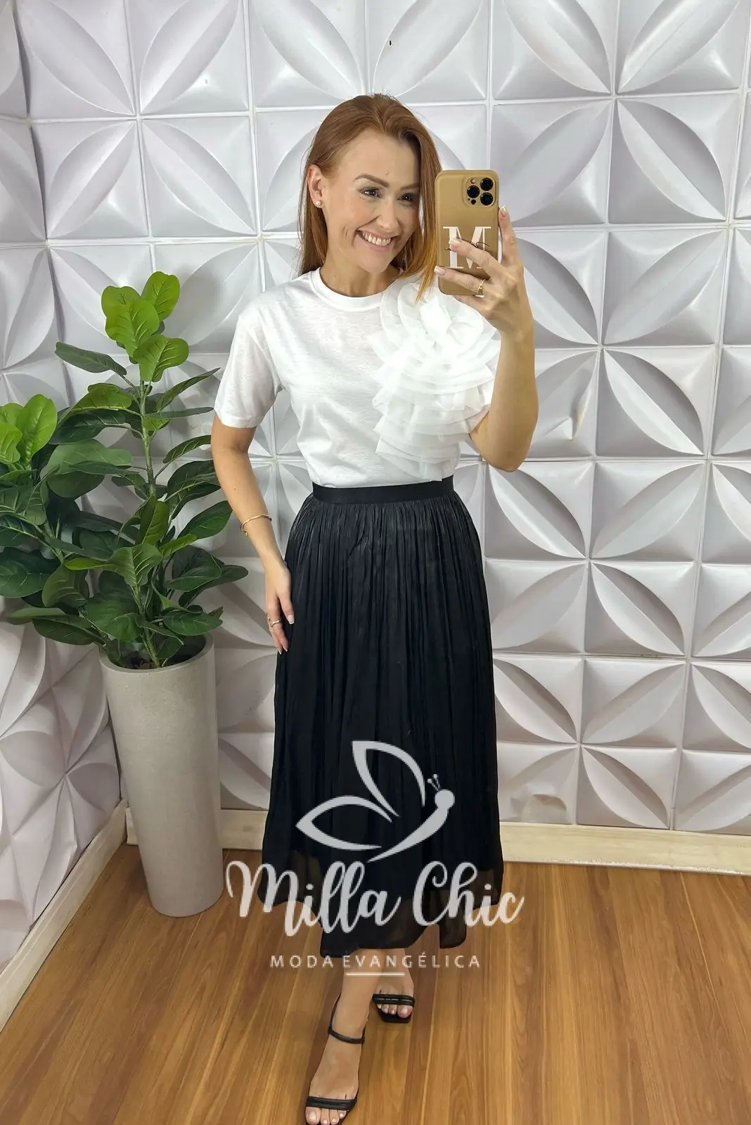 O detalhe que deixa ela maravilhosa é a aplicação em flor em chiffon que é uma super tendência atual e vai deixar minhas irmãs de arrasar .