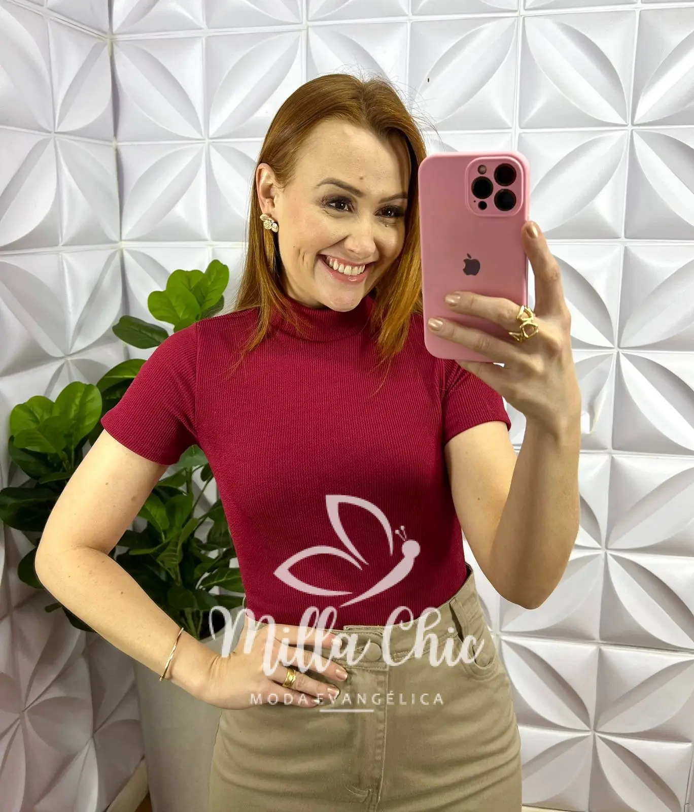 Blusa Canelada Anarruga Gola Alta Paloma - Cherry - Milla Chic