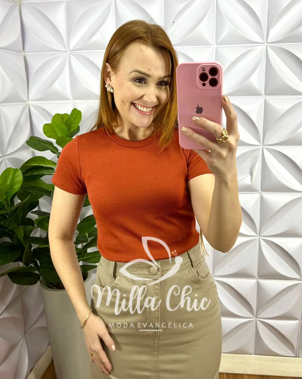 Blusa Canelada Anarruga Gola Careca Paloma - Terra Cota - Milla Chic