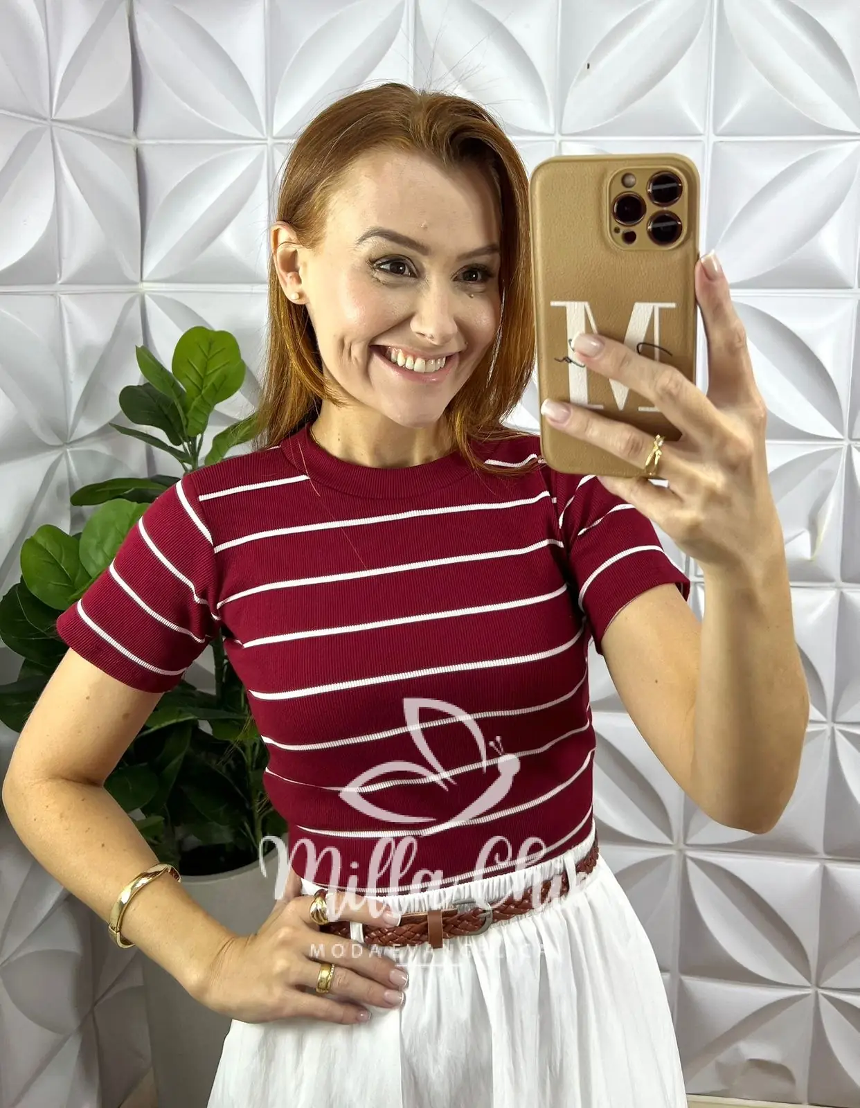 Blusa Canelada Básica Chic Listras  - Vermelha - Milla Chic