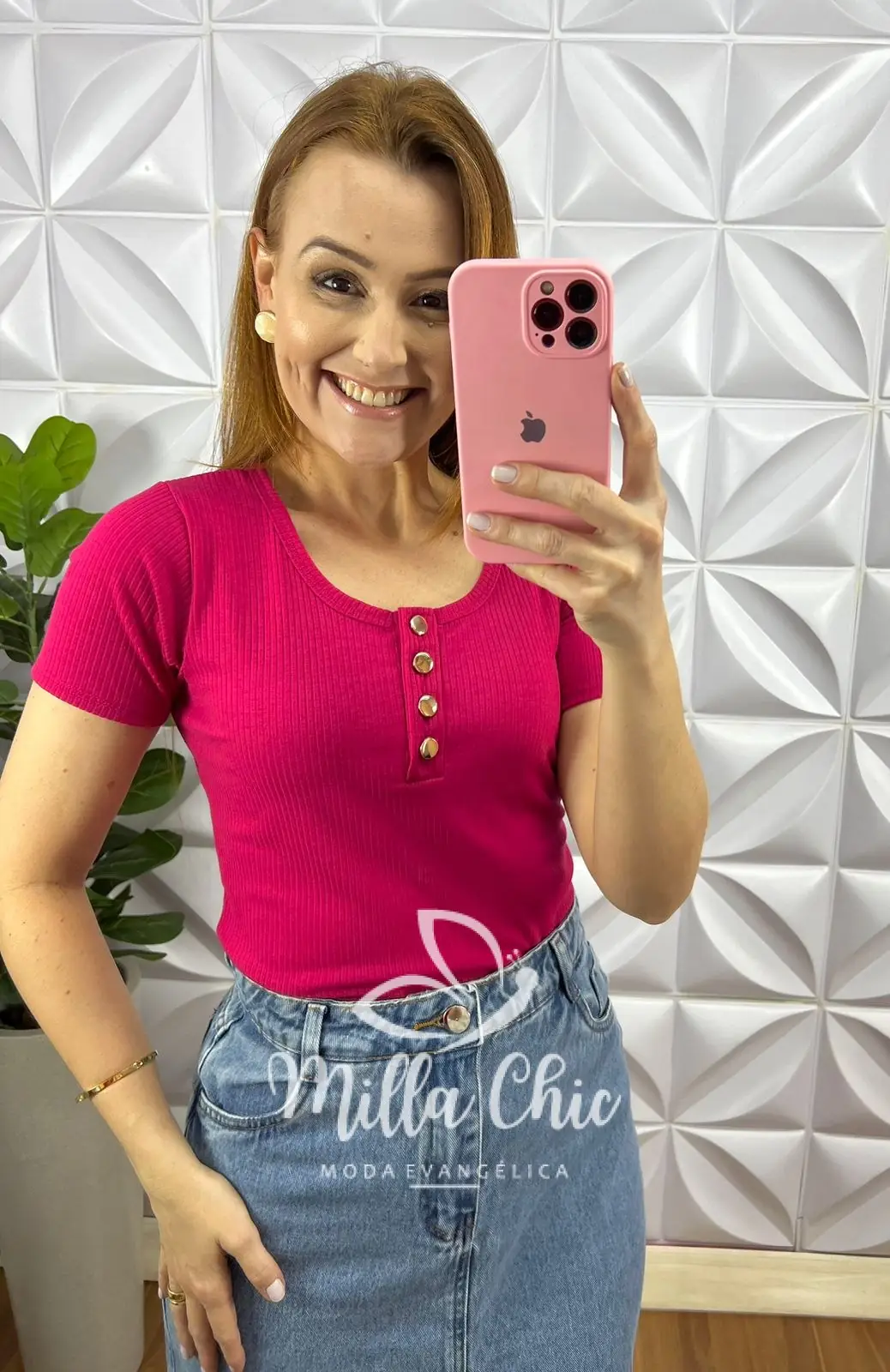 Blusa Canelada Com Botões Funcionais Priscila - Pink - Milla Chic