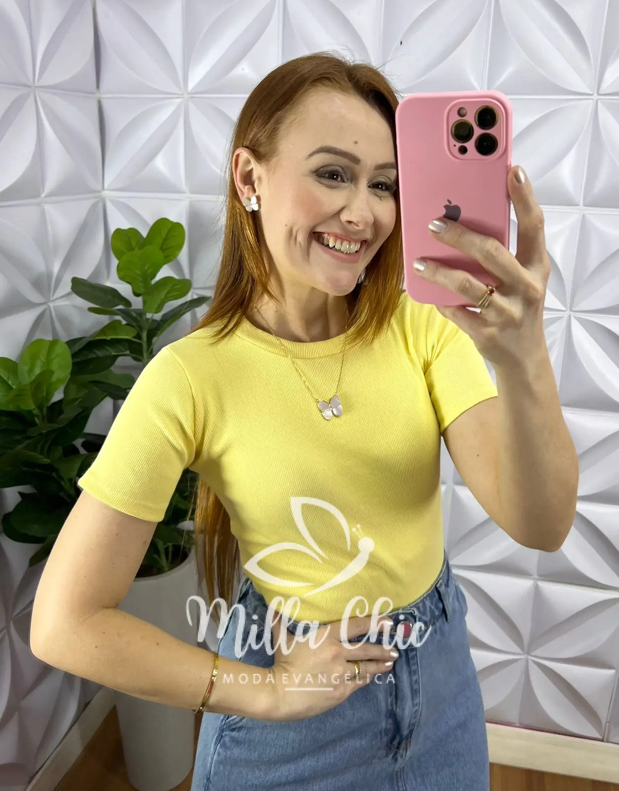 Blusa Canelada Ribana Candy Color Mila - Manteiga - Milla Chic