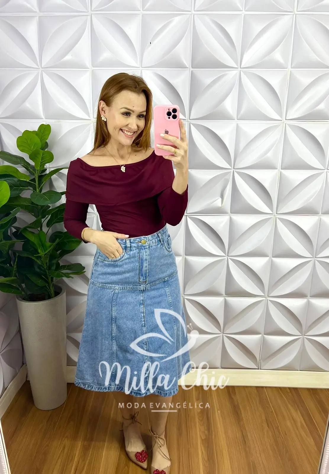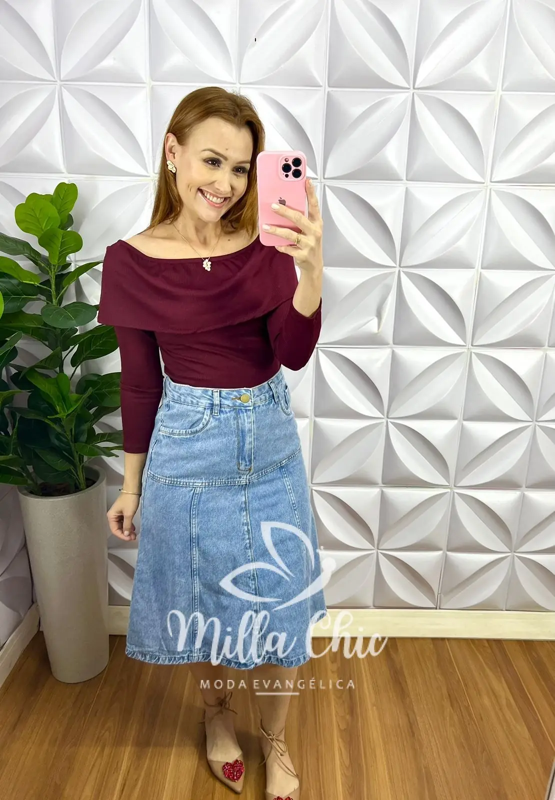 Blusa Canelado Ribana Manga Longa Com Pala No Decote Ágata – Cereja