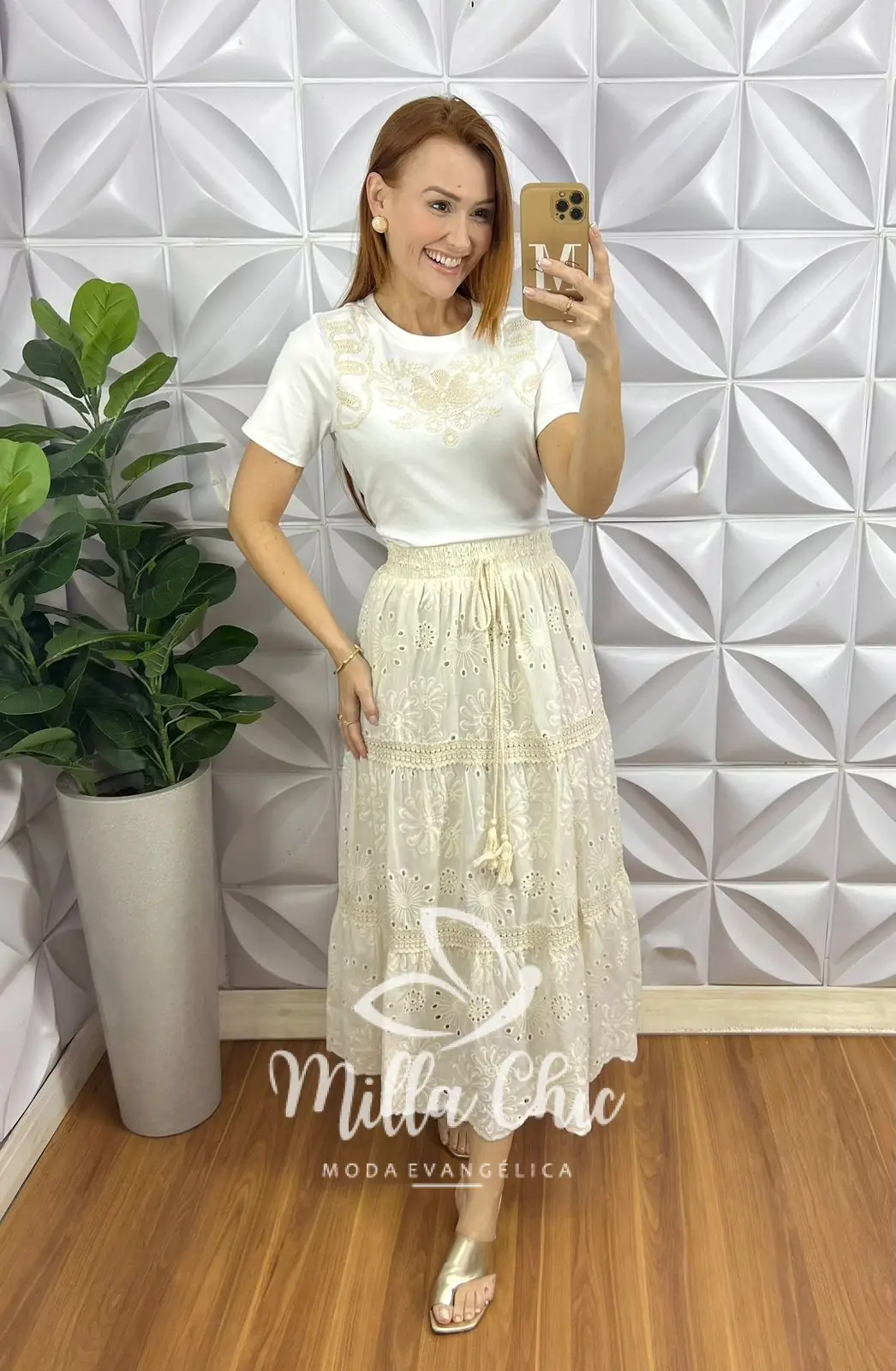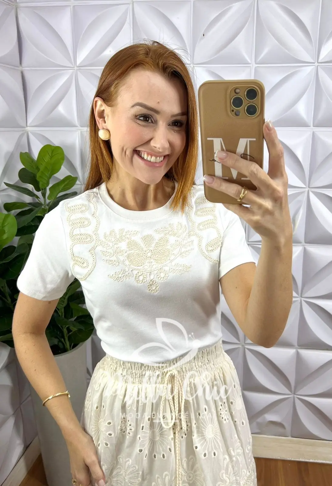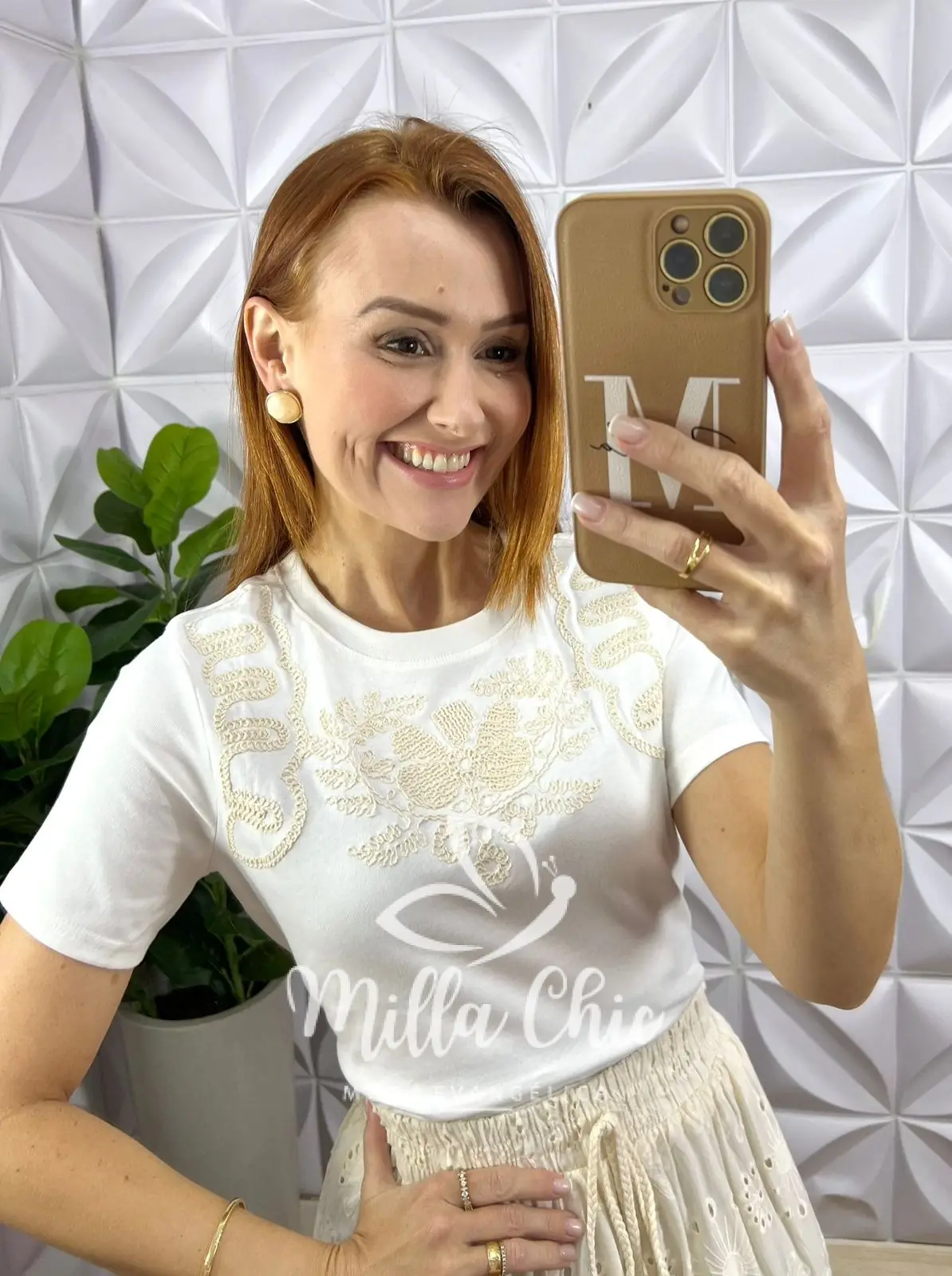 Blusa Cannes Malha De Algodão Bordada - Branca - Milla Chic