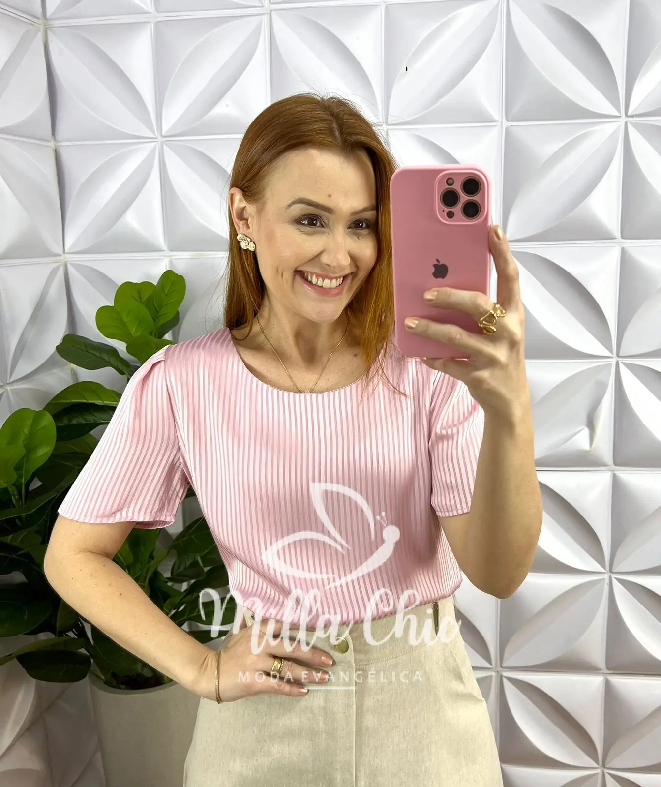 Blusa Cetim Manga Levemente Princesa Joana - Rosa - Milla Chic