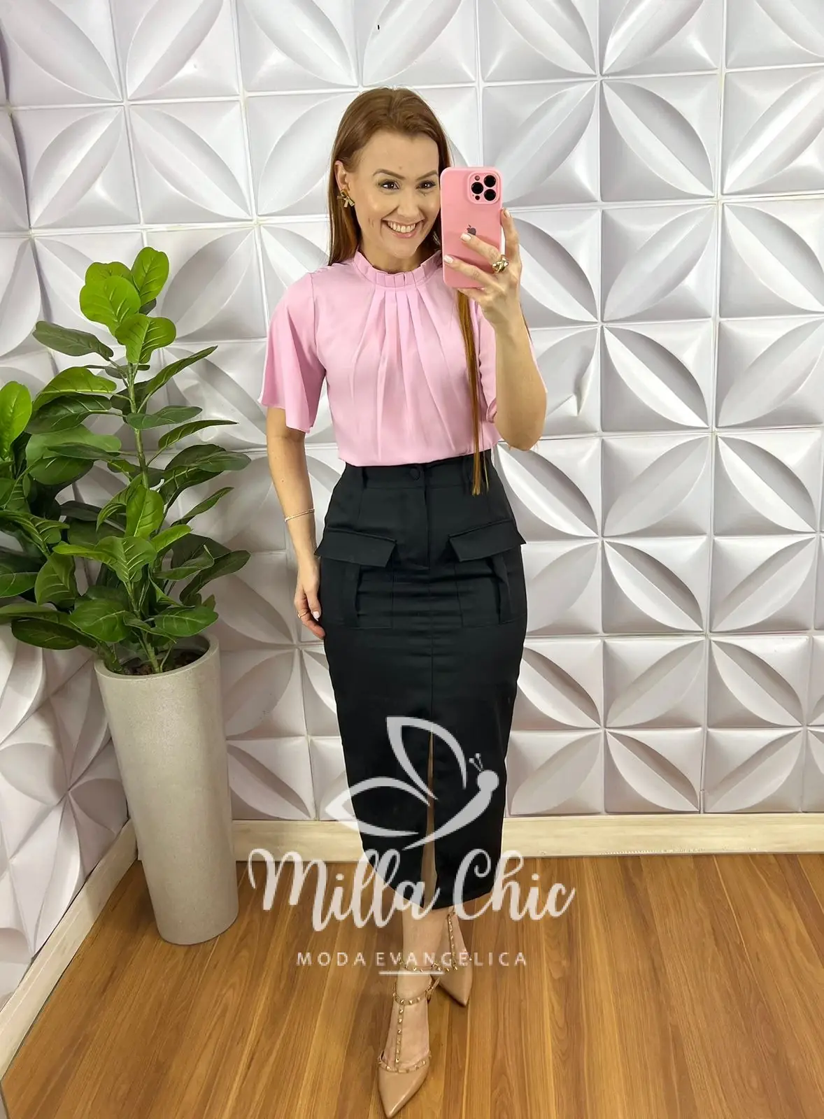 Blusa Chiffon Encorpado Com Drapeados Na Gola Malu – Rosa