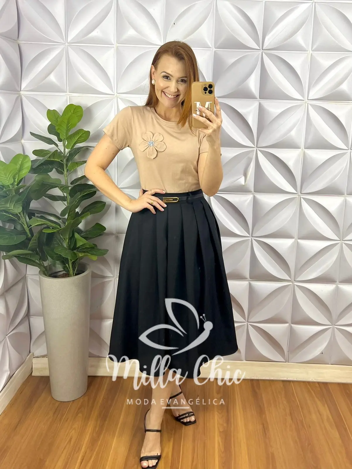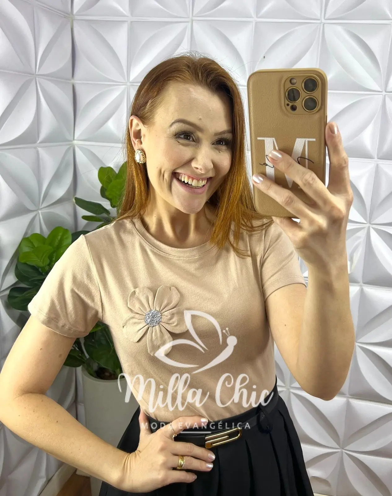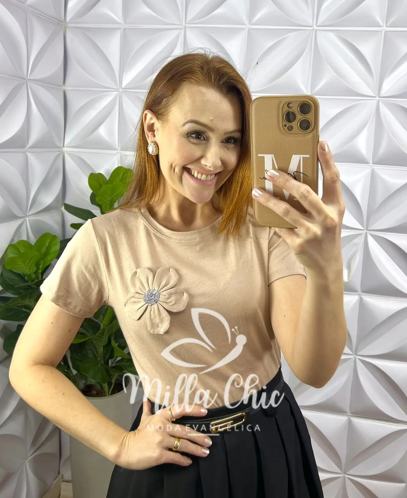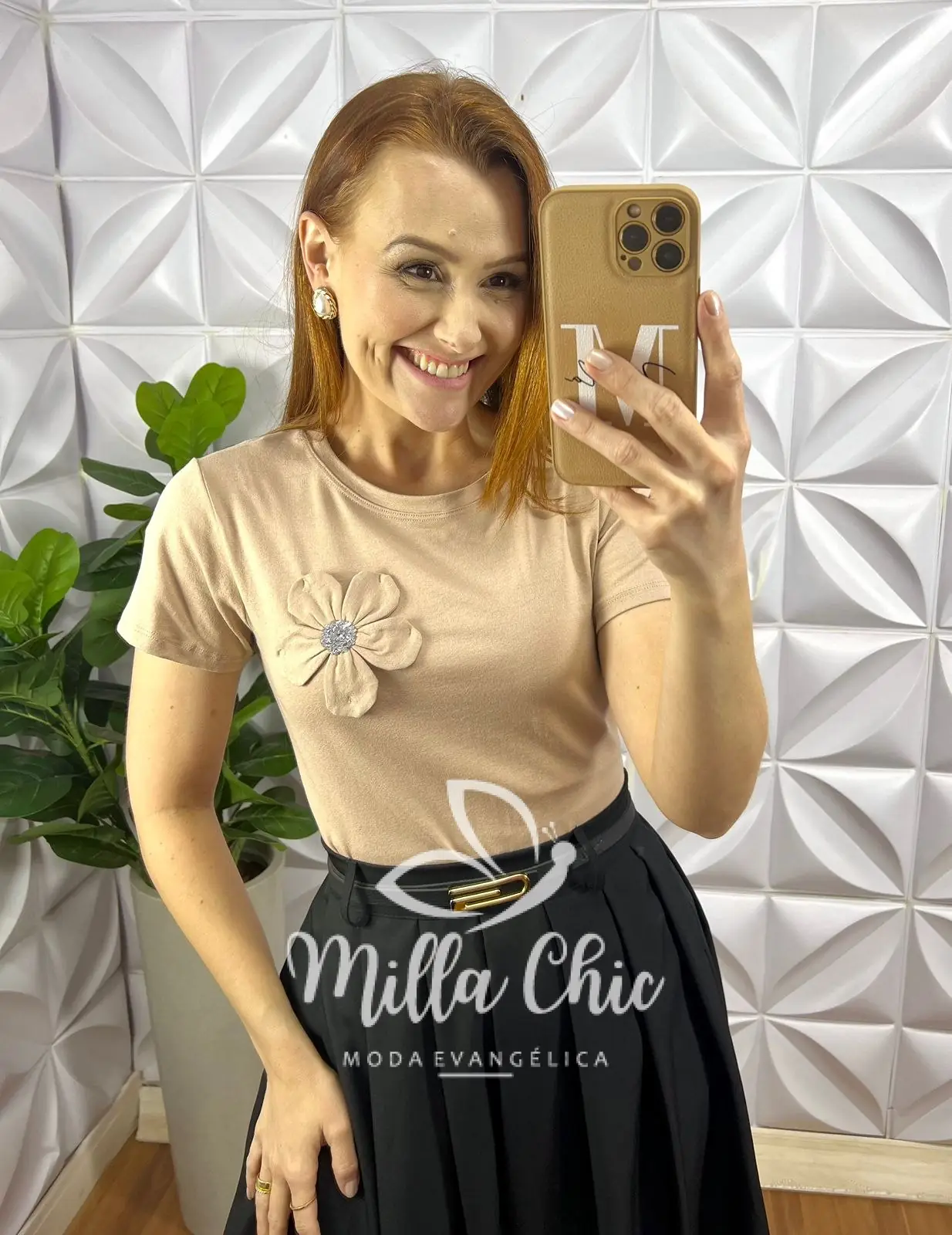 Blusa Com Aplicação de Flor No Viscolycra Florença - Nude - Milla Chic