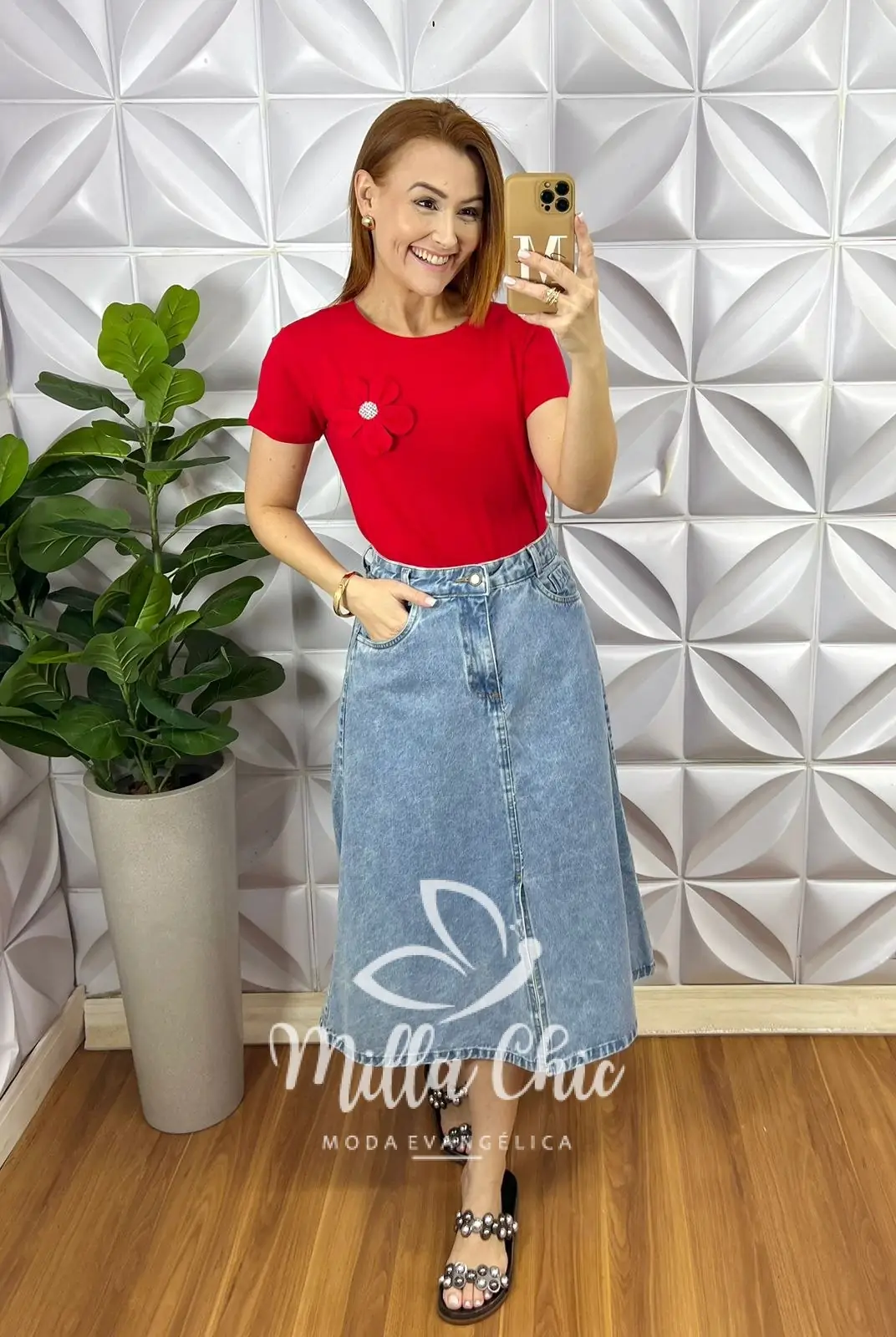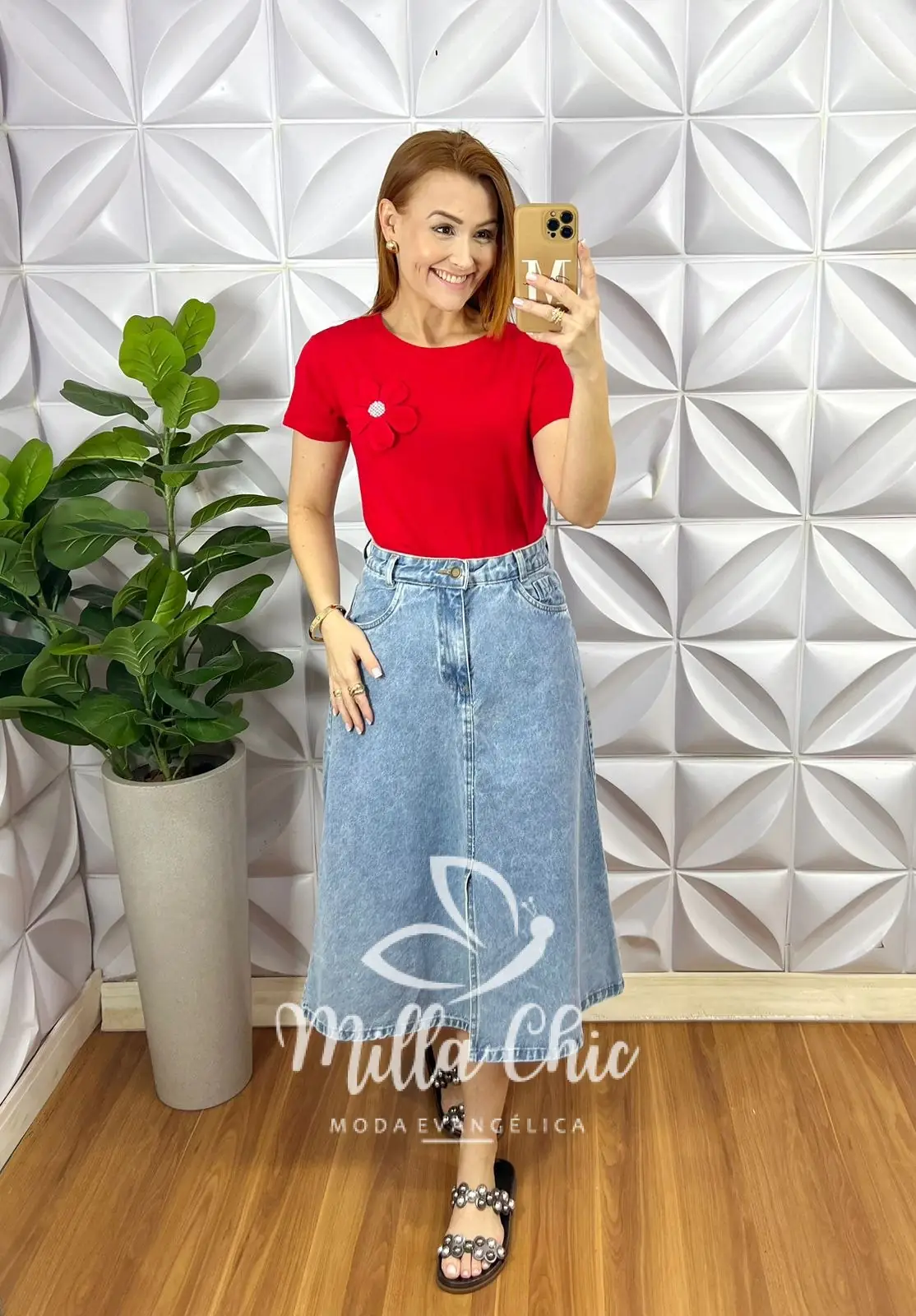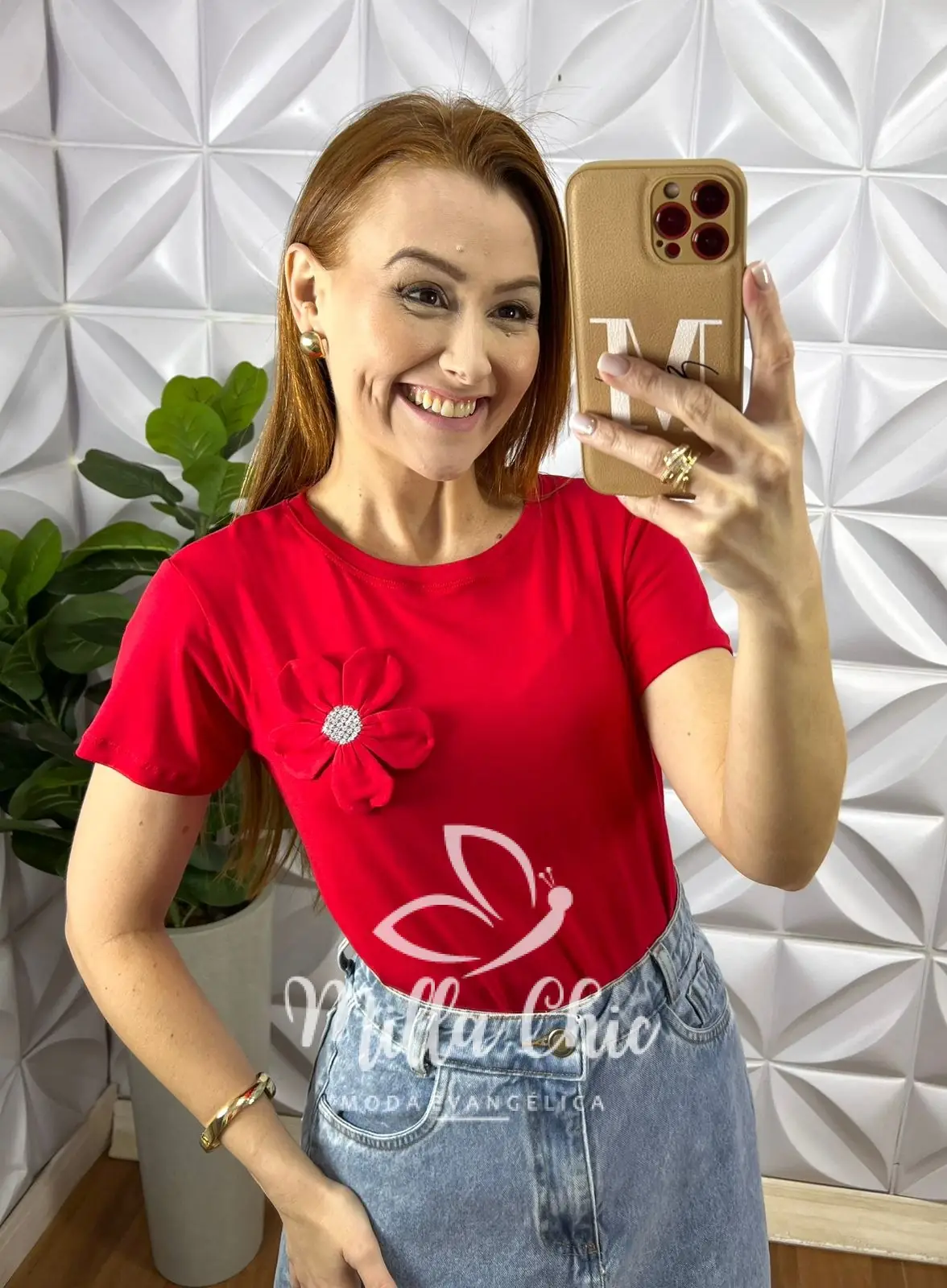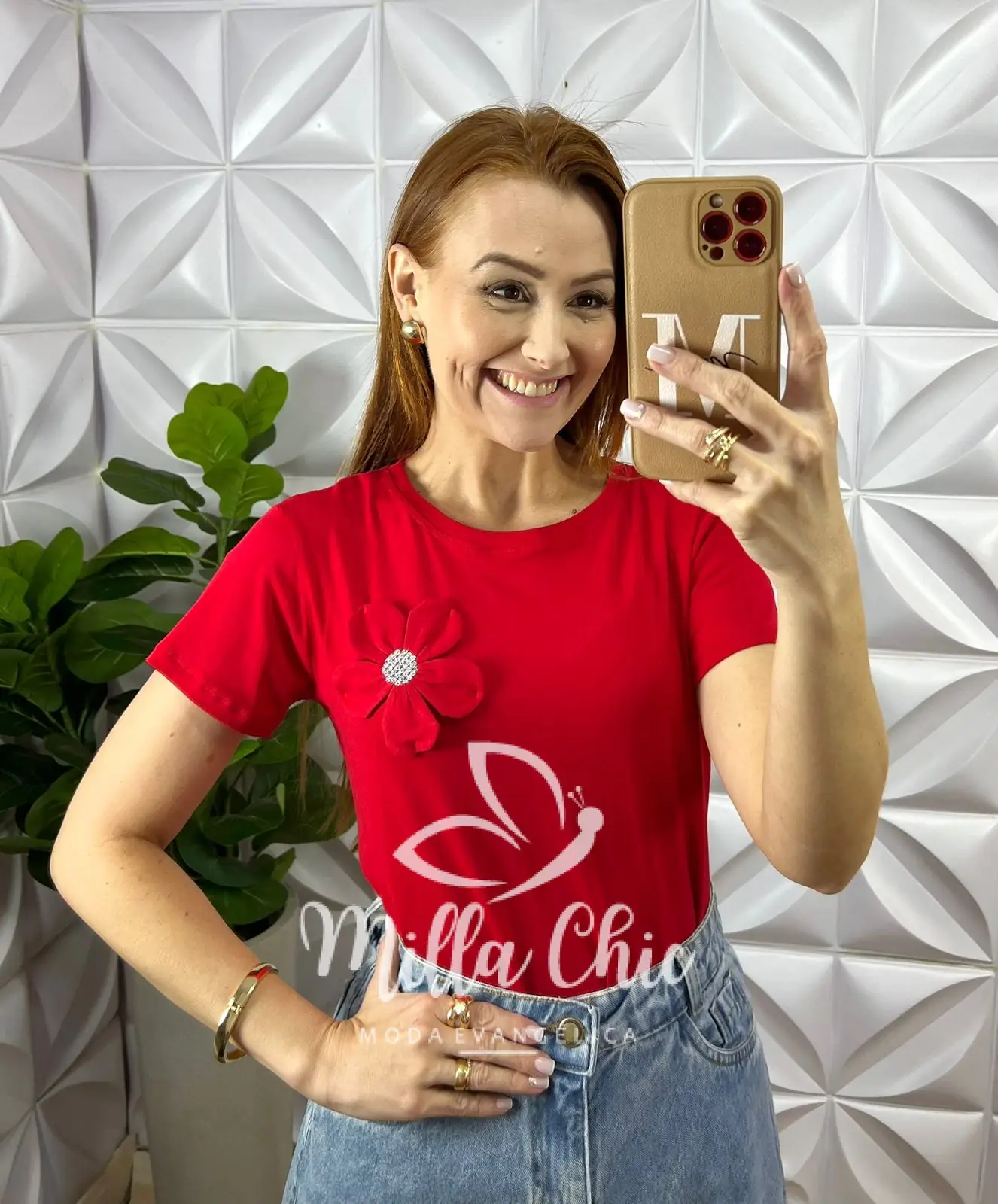 Blusa Com Aplicação de Flor No Viscolycra Florença – Vermelha