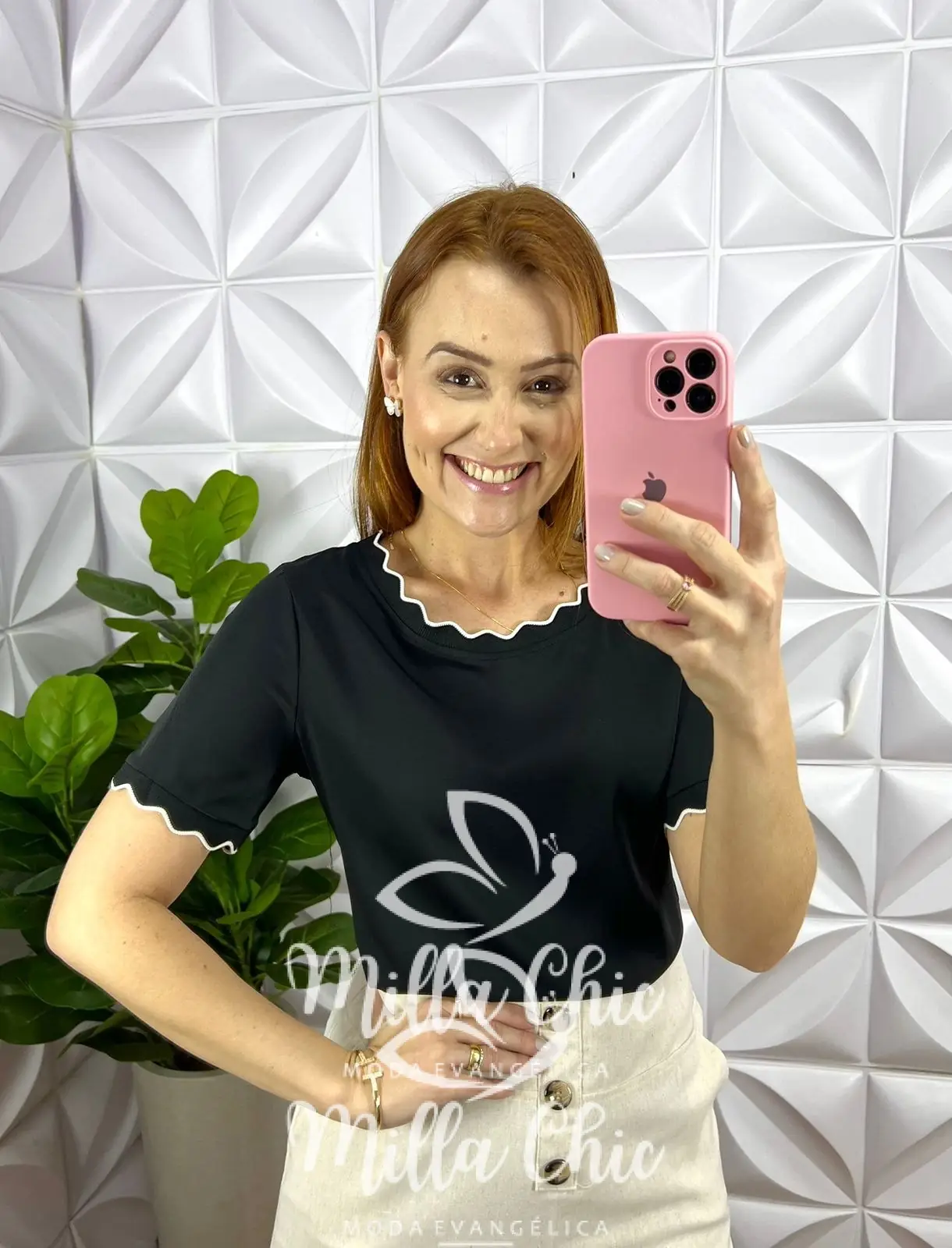 Blusa Crepe De Seda Com Gola Marcada Giordani – Preta