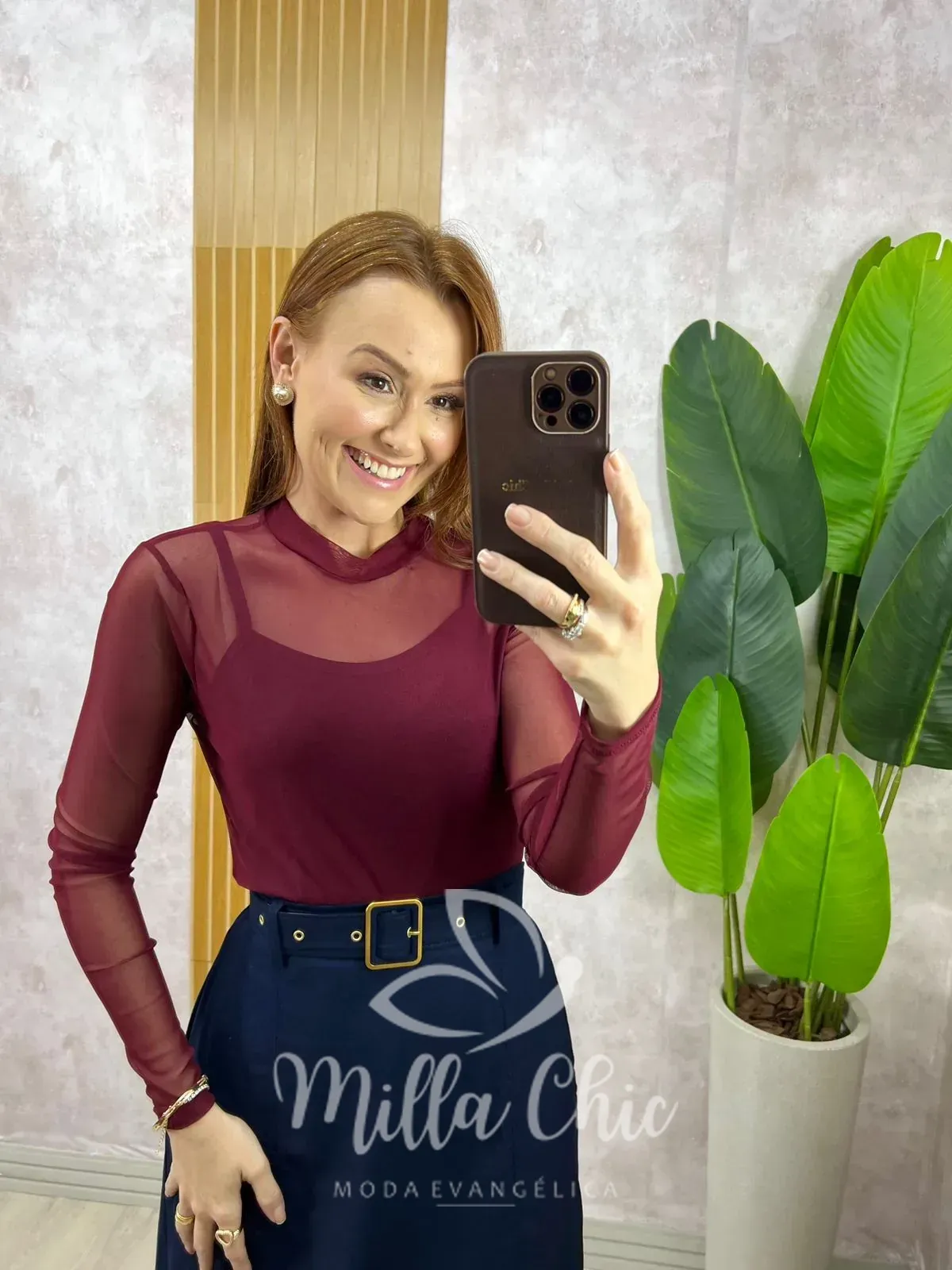 A Blusa Éloise Tule Chic é a definição de delicadeza e sofisticação. Confeccionada em tule com elastano, ela se ajusta perfeitamente ao corpo, valorizando com muito conforto e leveza.