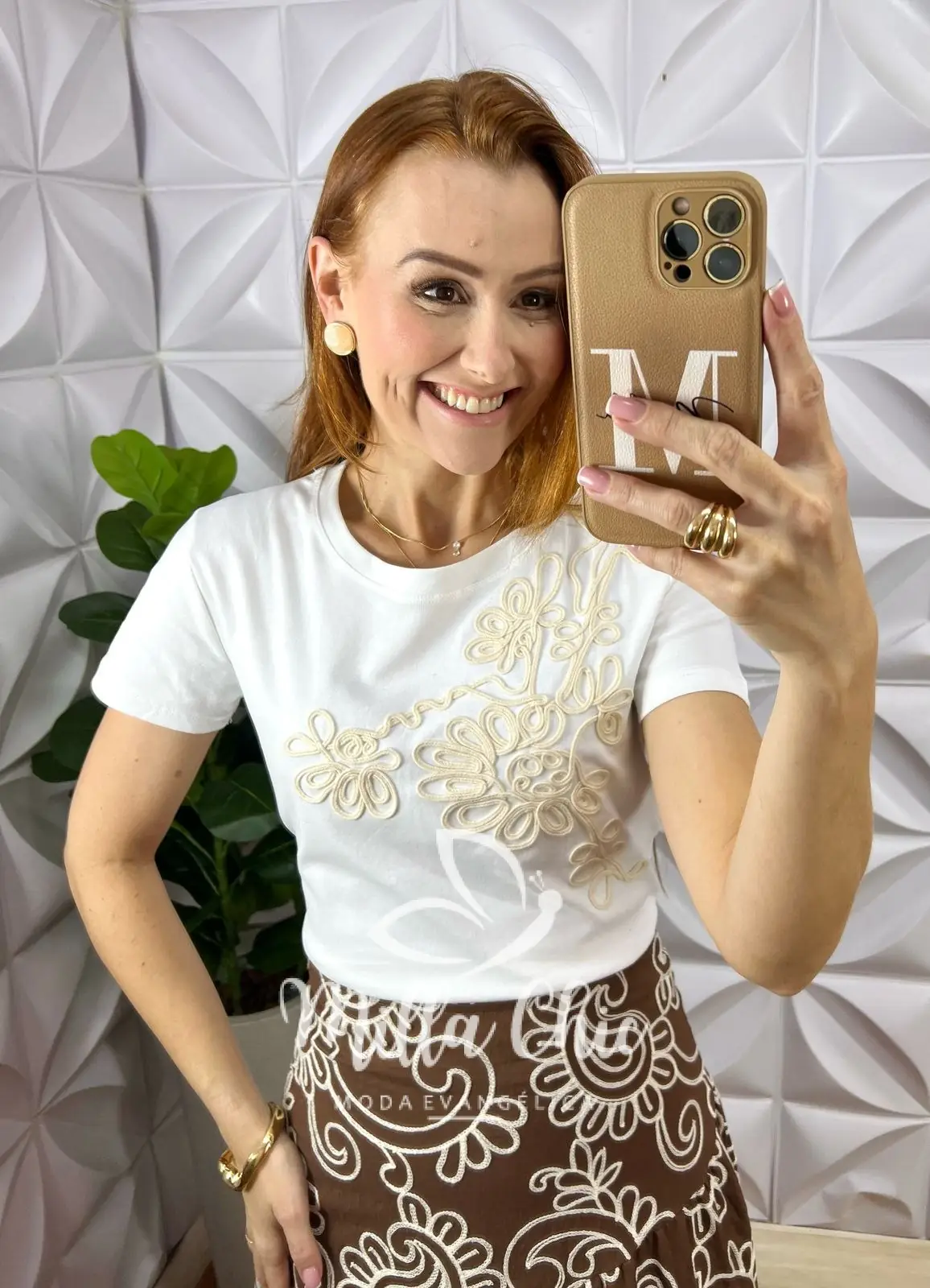 Essas aplicações em bordado cordone que são super tendência boho chic e deixa o look lindo e estiloso.