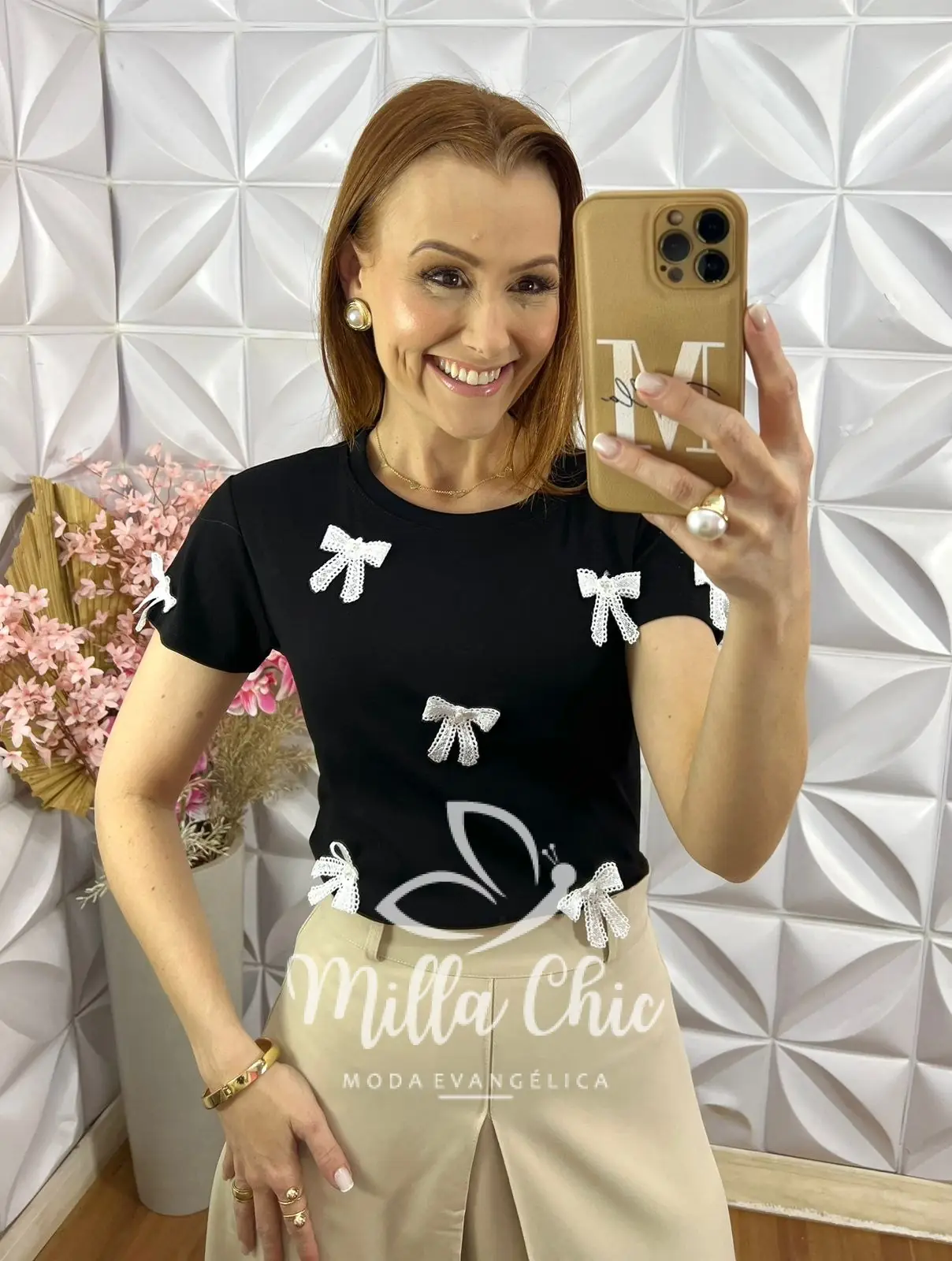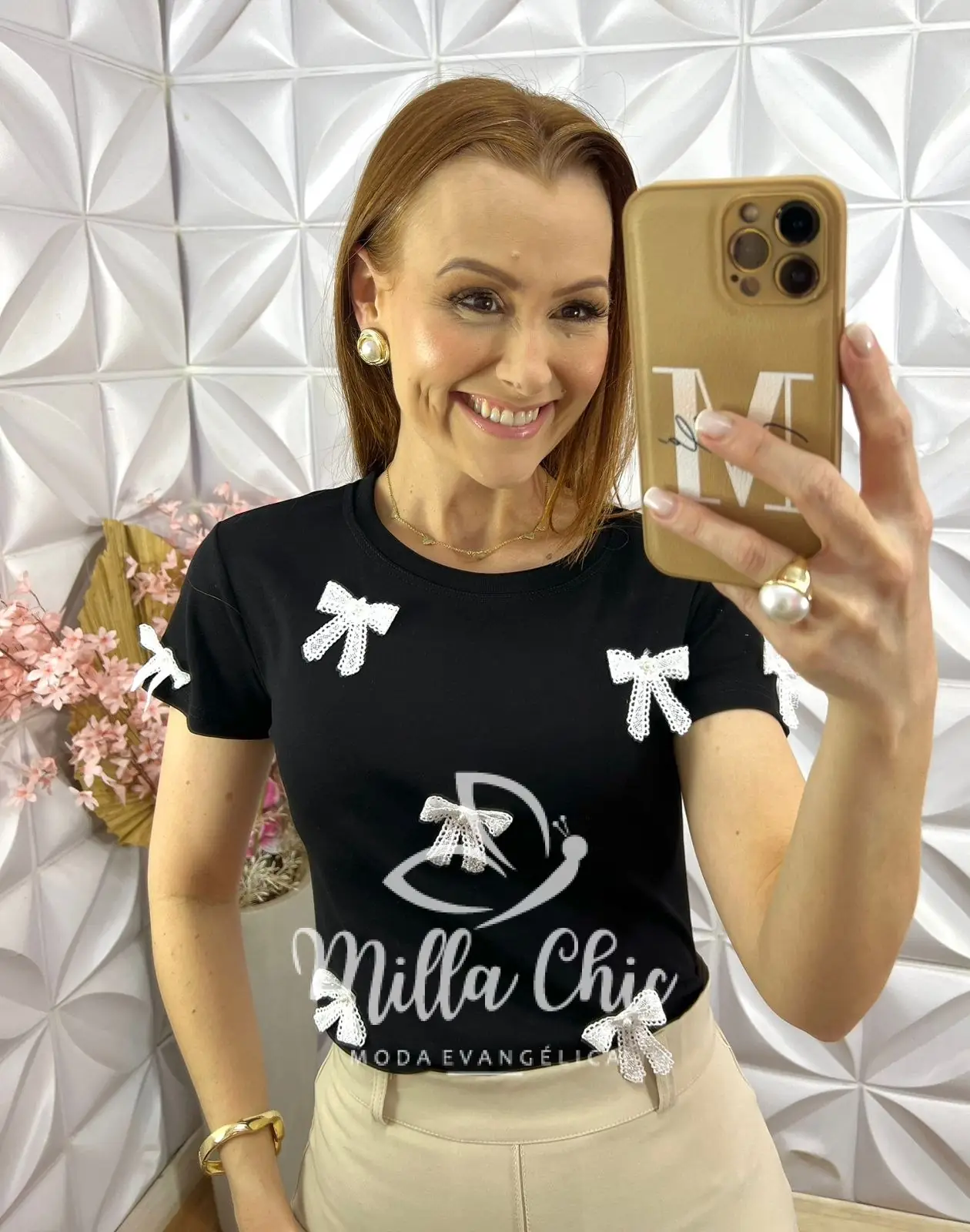 Aquela blusa confortável e estilosa para looks casuais ficarem mais elegantes e sofisticados. Confeccionada em malha 100% algodão. Muito confortável e fresca. E o detalhe que faz toda diferença e deixa ela linda e delicada e muito chic são as aplicações em laços de guipper . É o que traz toda a elegância para essa blusa.
