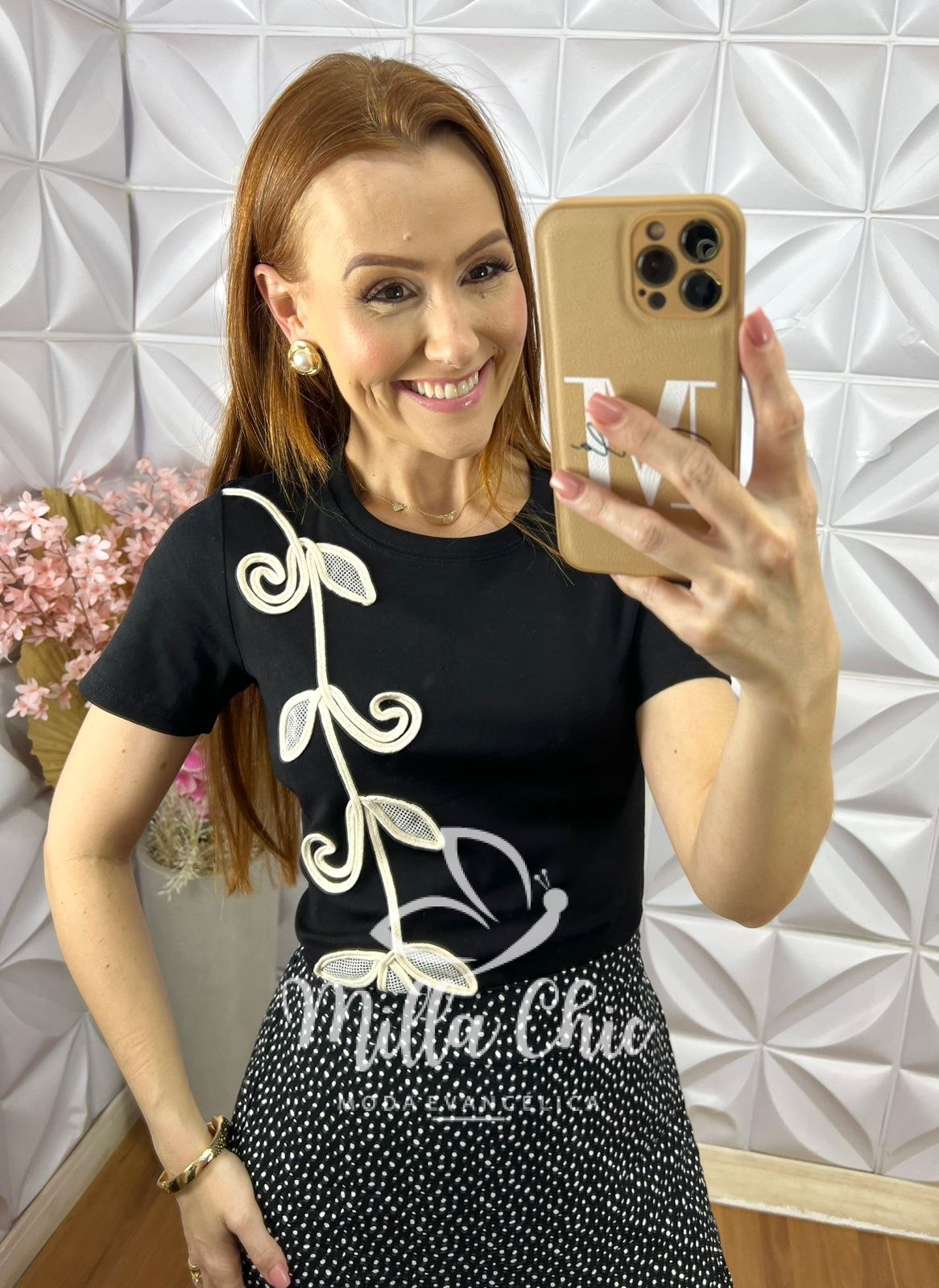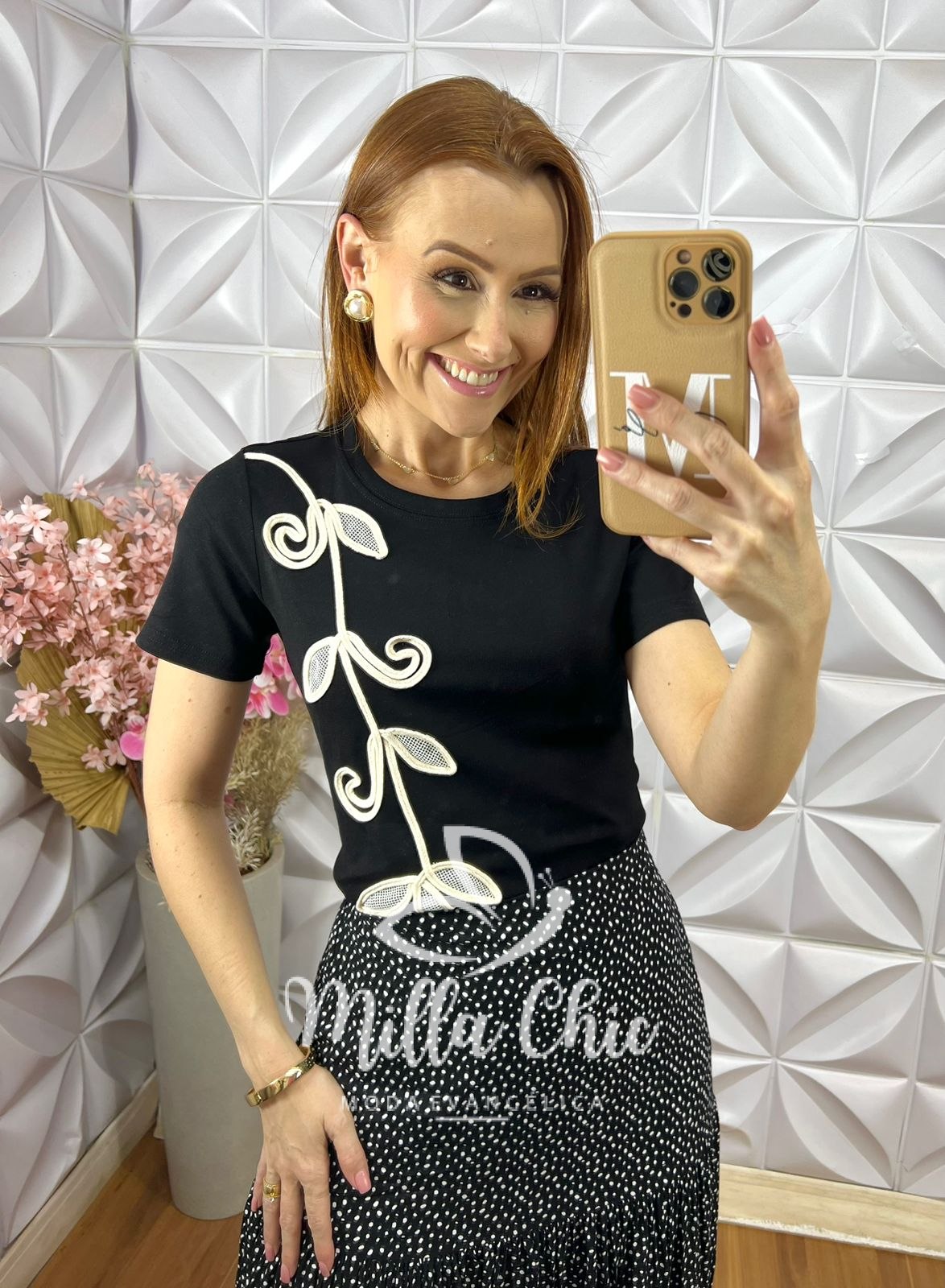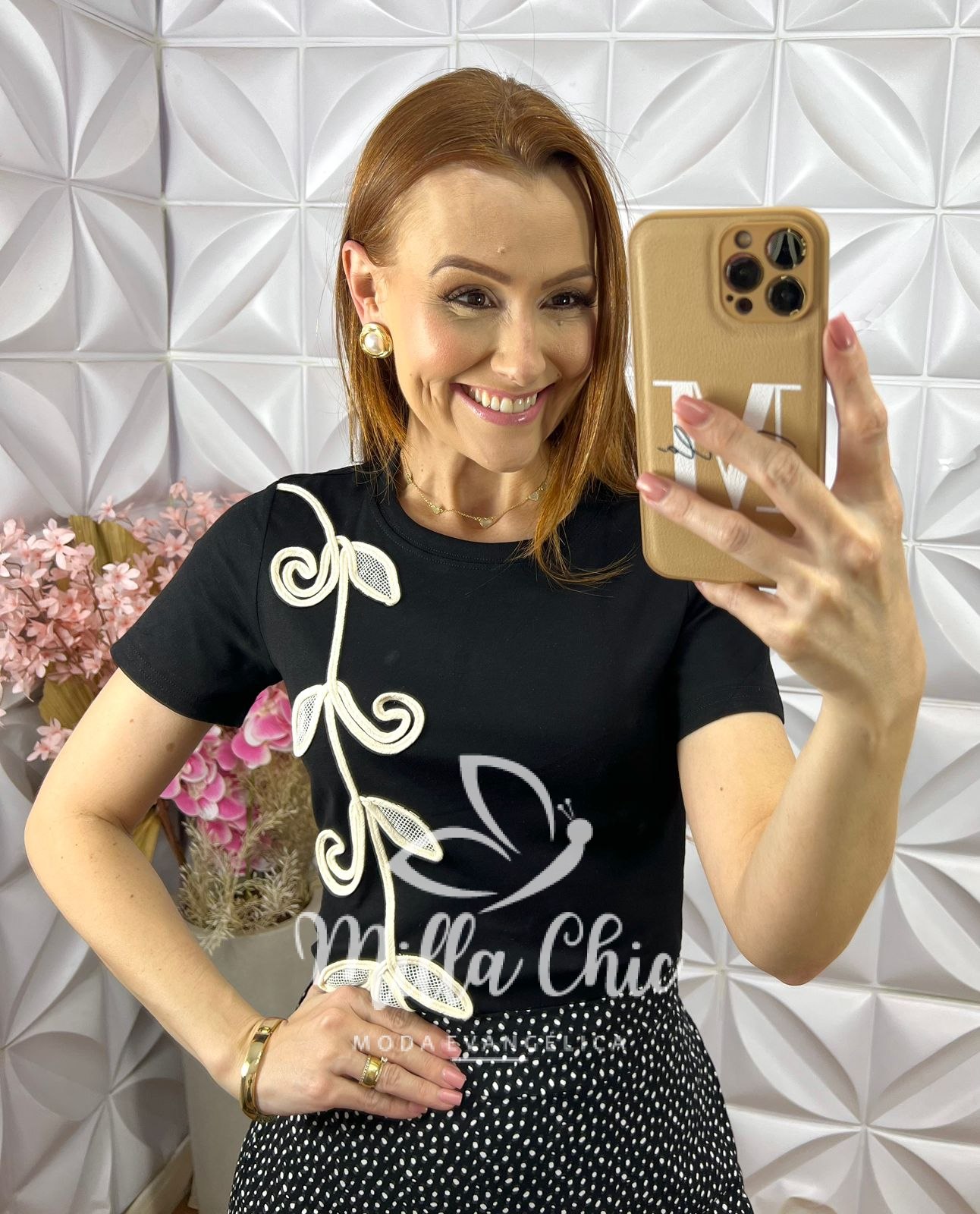 Blusa Guiomar Com Bordado Cordonê- Preta - Milla Chic