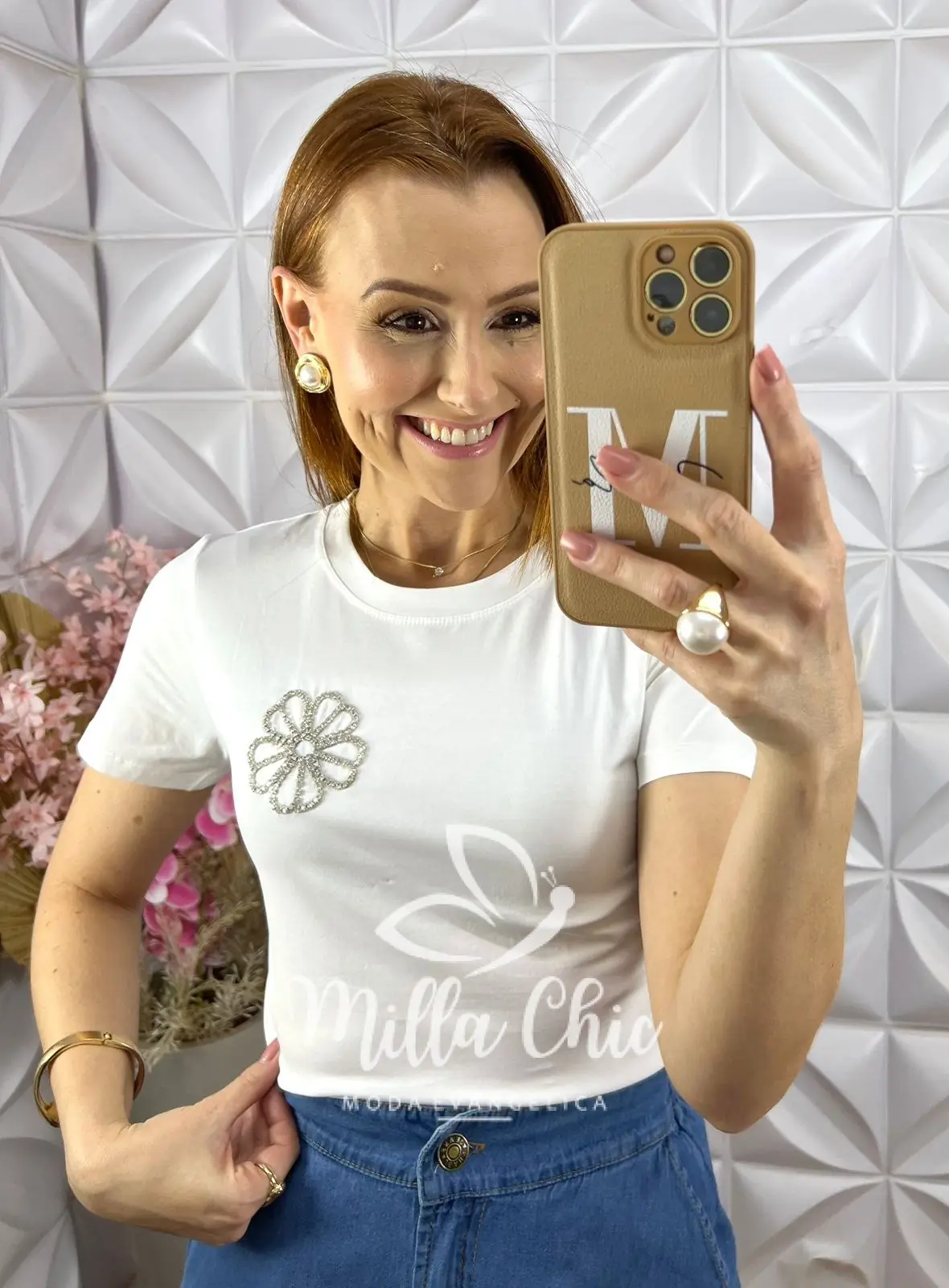 Aquela blusa confortável e estilosa para looks casuais ficarem mais elegantes e sofisticados . Confeccionada em malha 100% algodão . Muito confortável e fresca . E o detalhe que faz toda diferença é o bordado de flor em strass . É o que traz toda a elegância para essa blusa .
