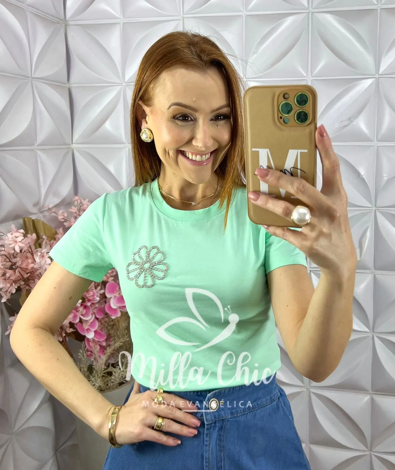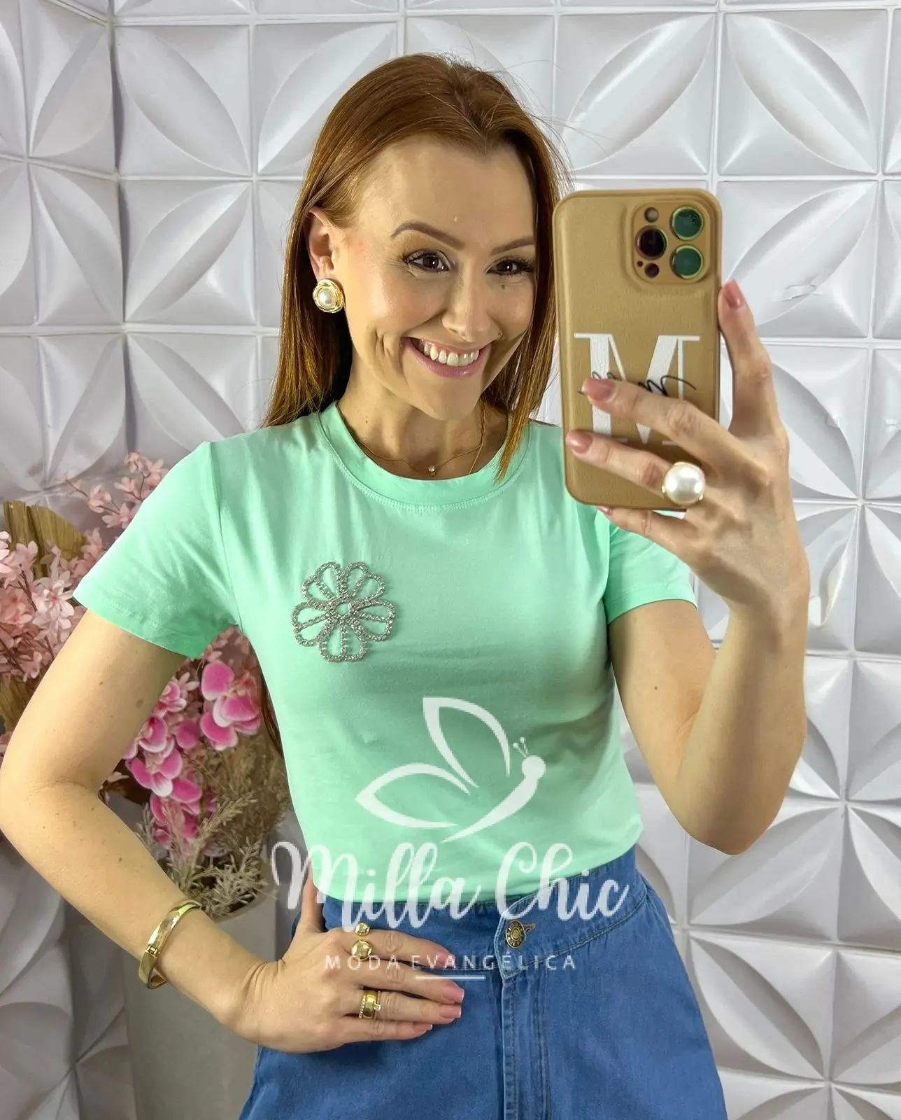 Aquela blusa confortável e estilosa para looks casuais ficarem mais elegantes e sofisticados . Confeccionada em malha 100% algodão . Muito confortável e fresca . E o detalhe que faz toda diferença é o bordado de flor em strass . É o que traz toda a elegância para essa blusa .