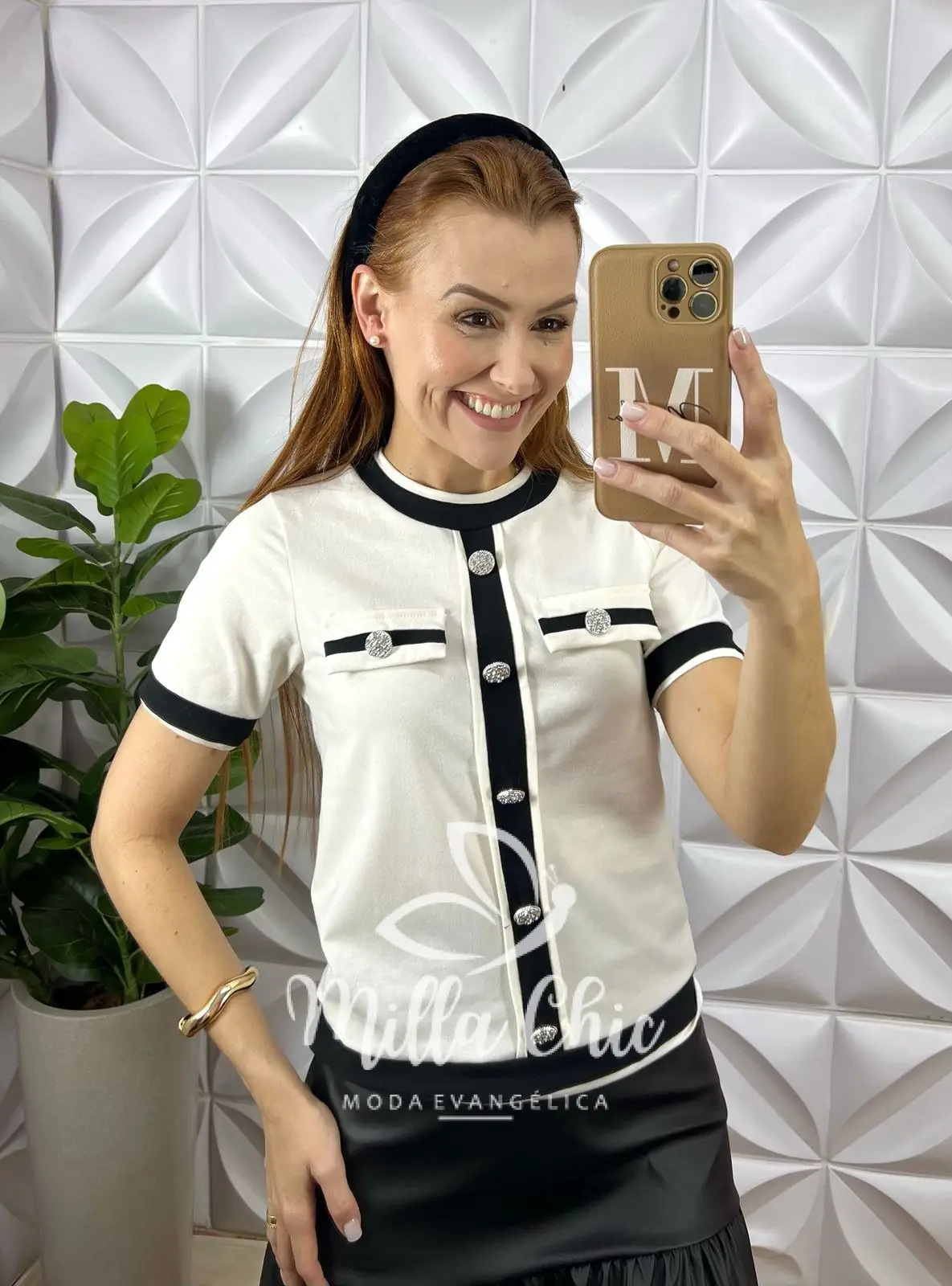 Blusa Henriqueta Com Botões  Strass - Branca - Milla Chic