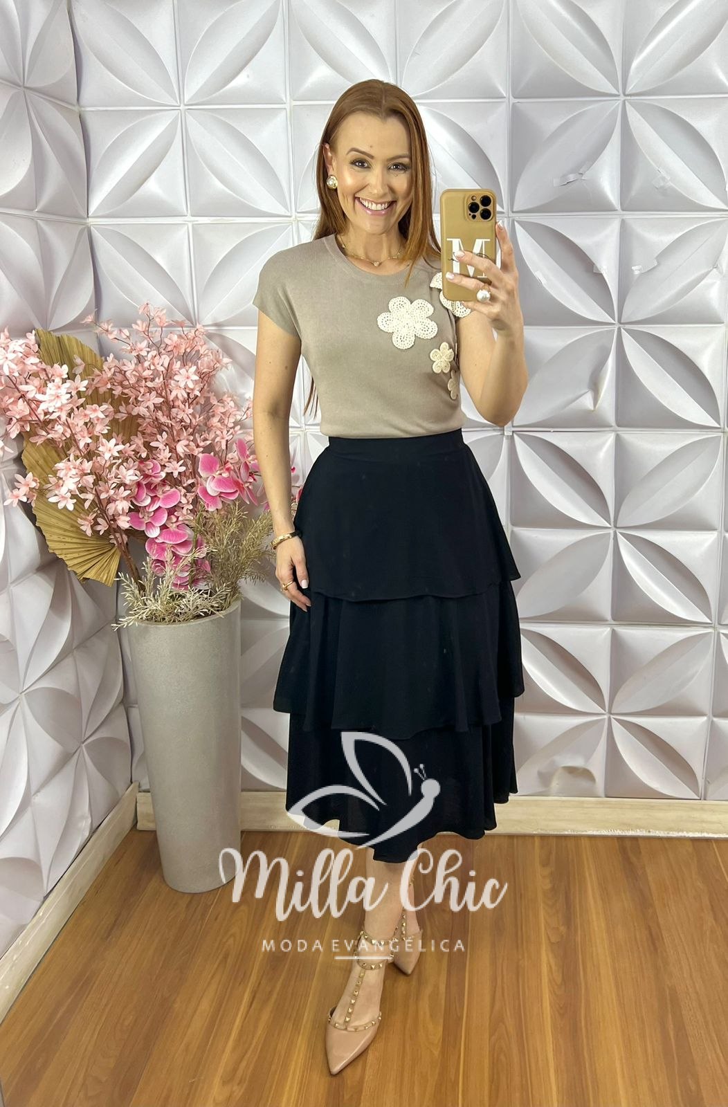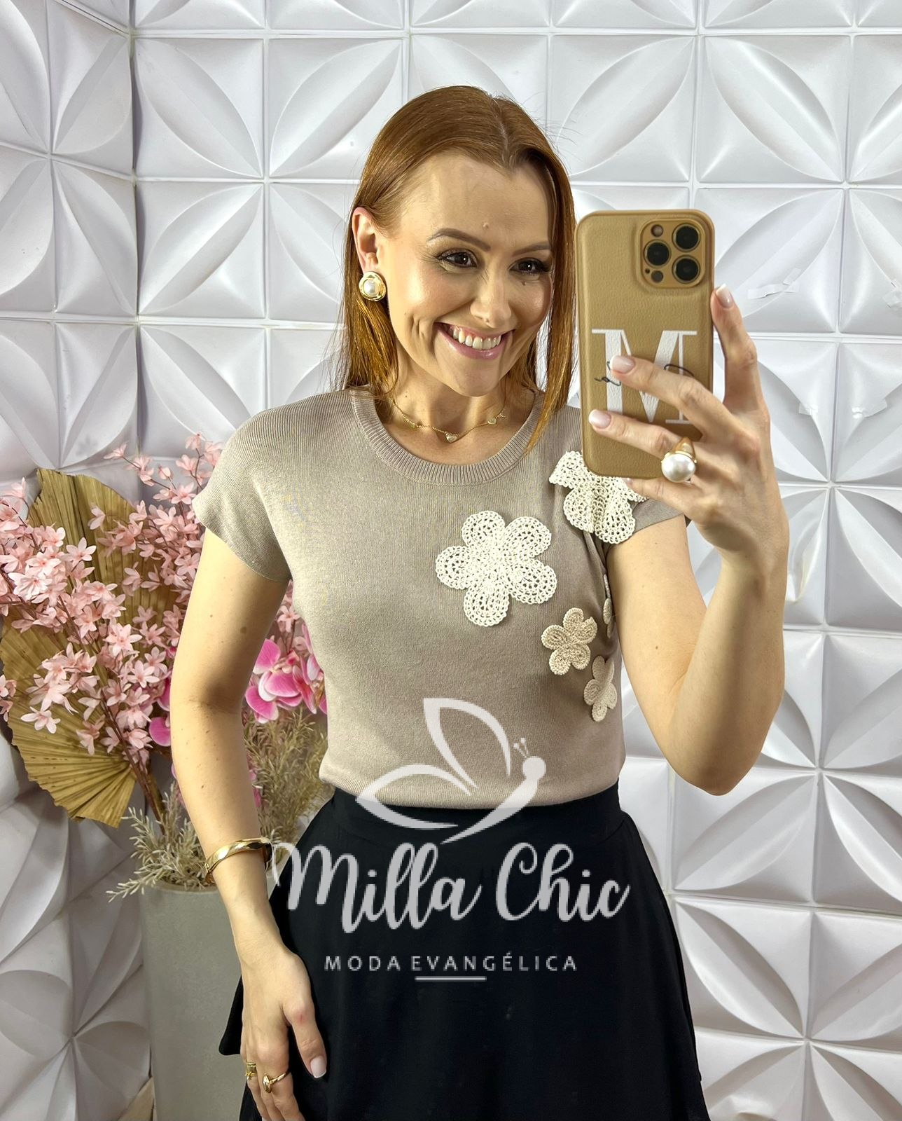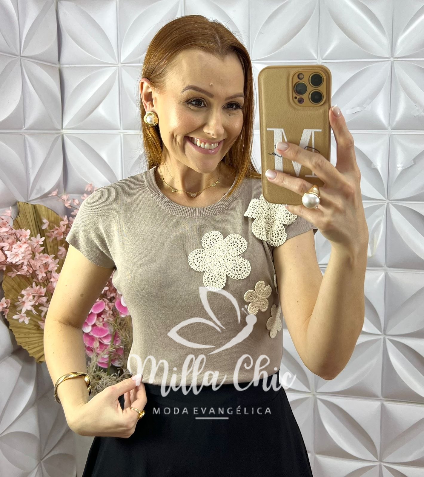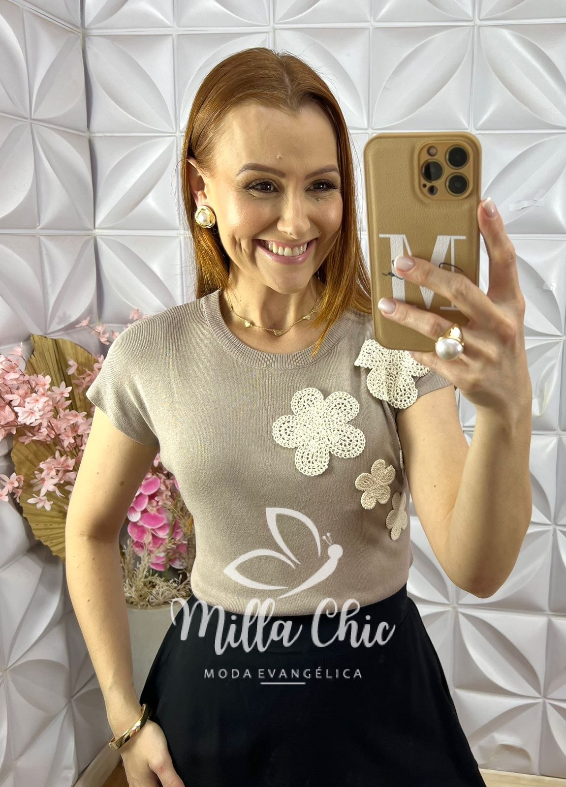 Blusa Isis em Tricot com Bordado - Cappuccino - Milla Chic