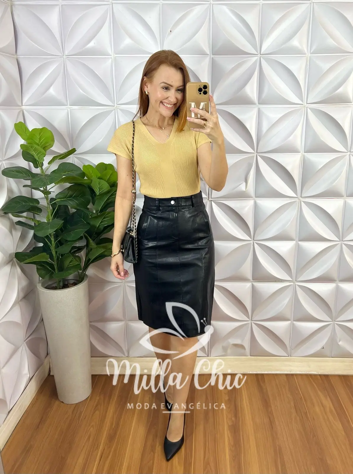 Ela deixa o look mais chic. E esse modelo tem a manga sem recorte decote V e o fio do tricot todo trabalhado .