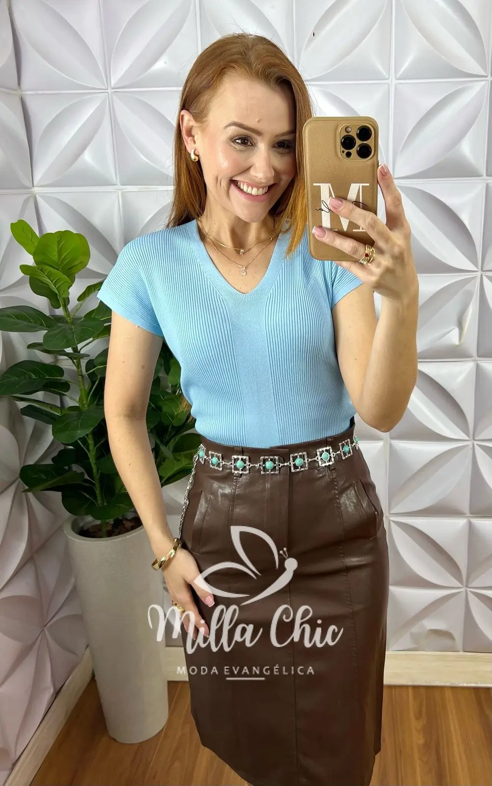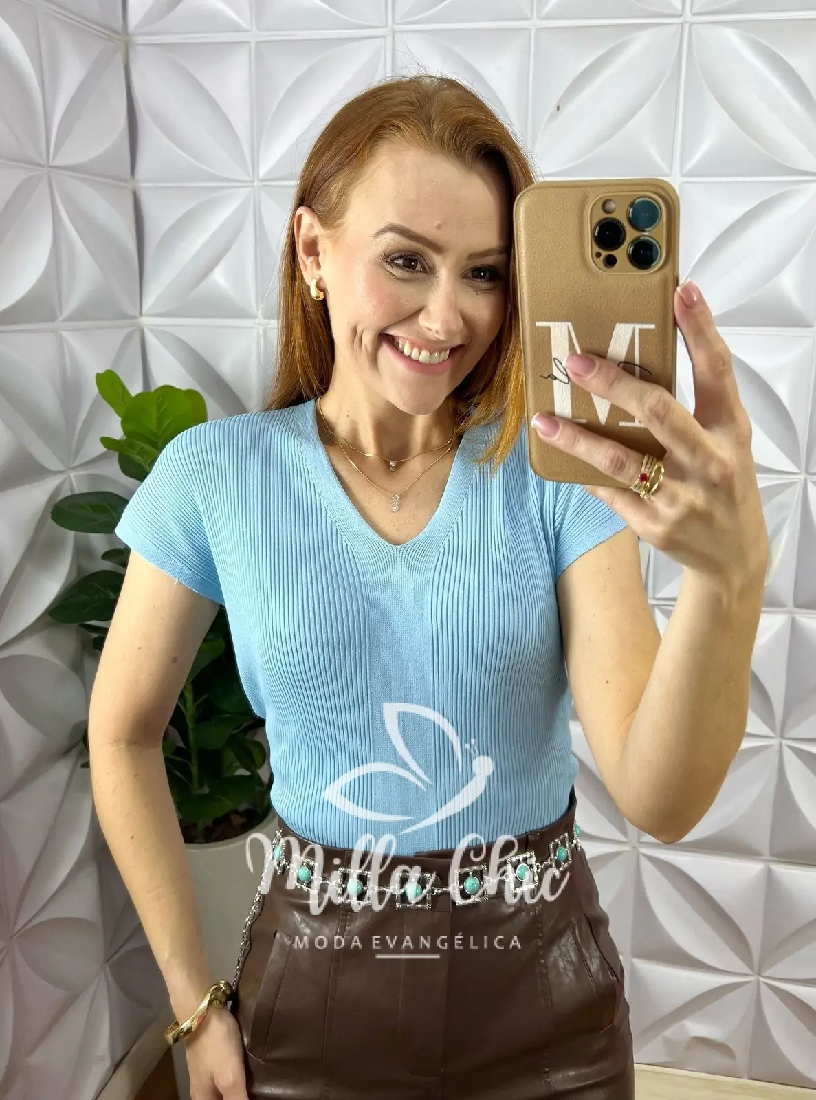 Ela deixa o look mais chic. E esse modelo tem a manga sem recorte decote V e o fio do tricot todo trabalhado .