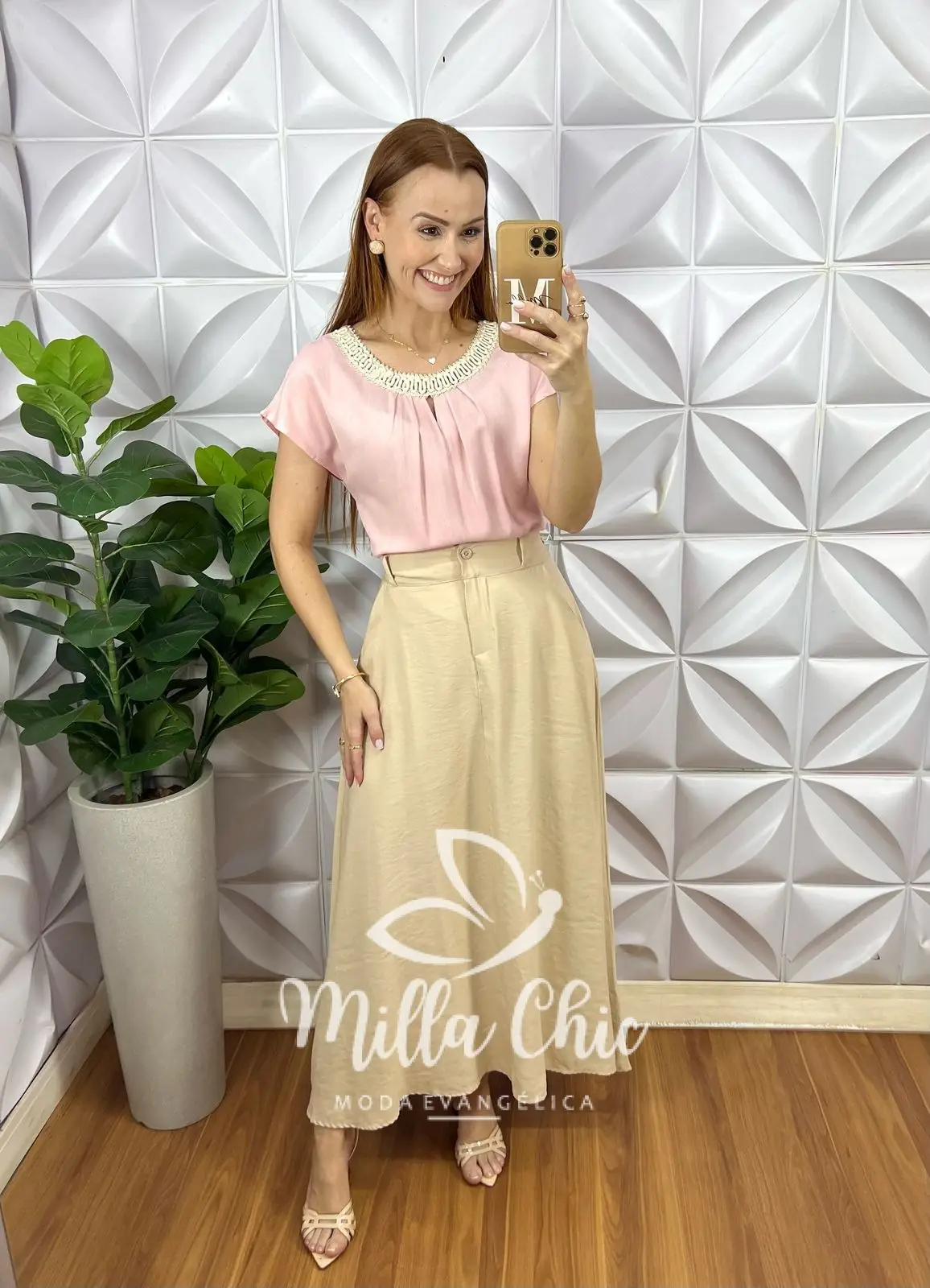 Blusa Joaquina Em Cambraia Algodão - Rosa - Milla Chic