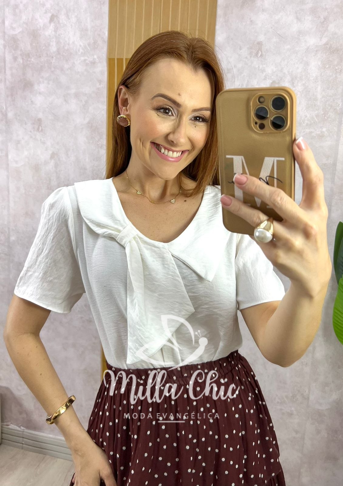 A blusa Julia com laço é aquela peça indispensável no guarda roupas, minhas irmãs.