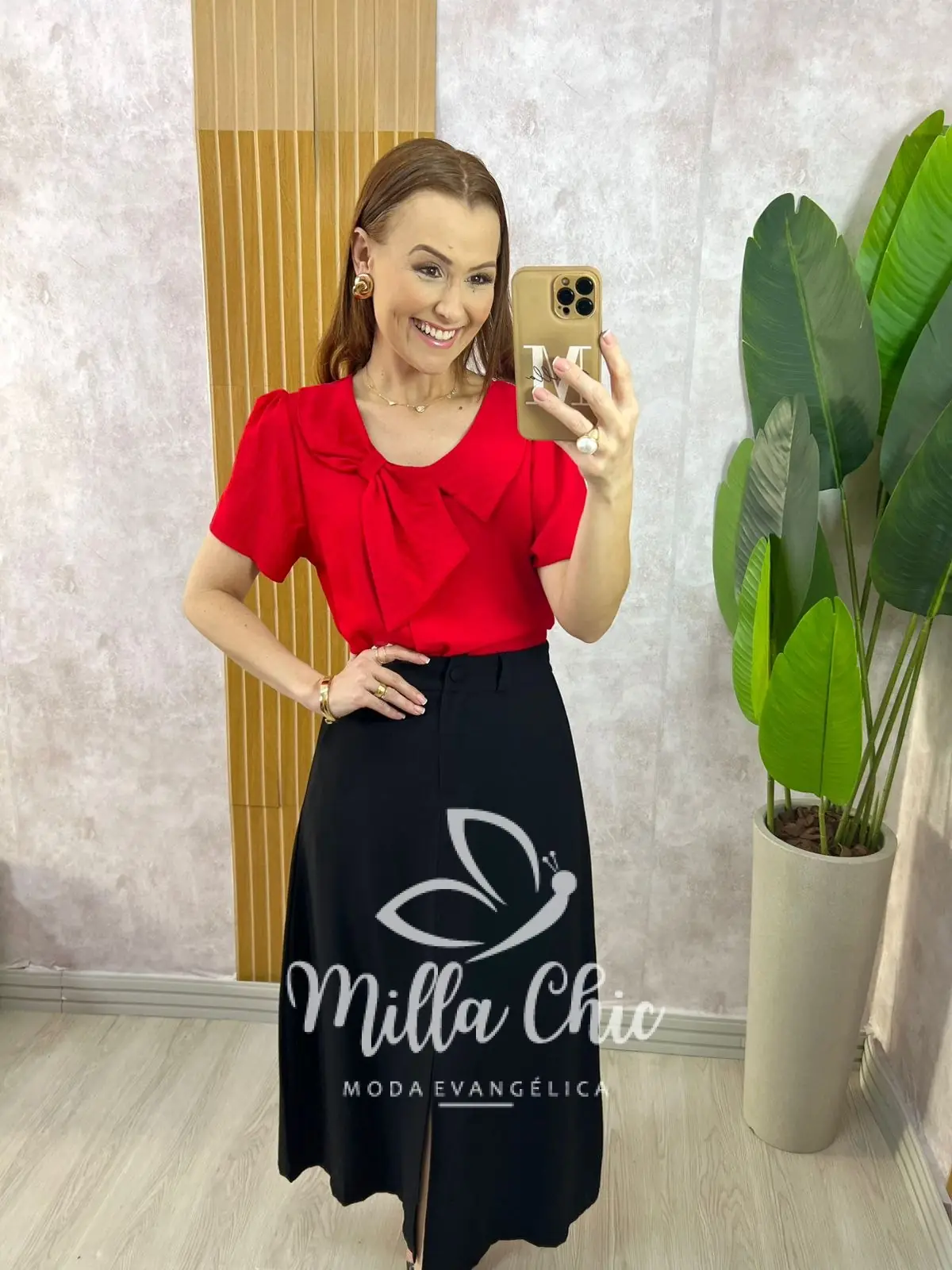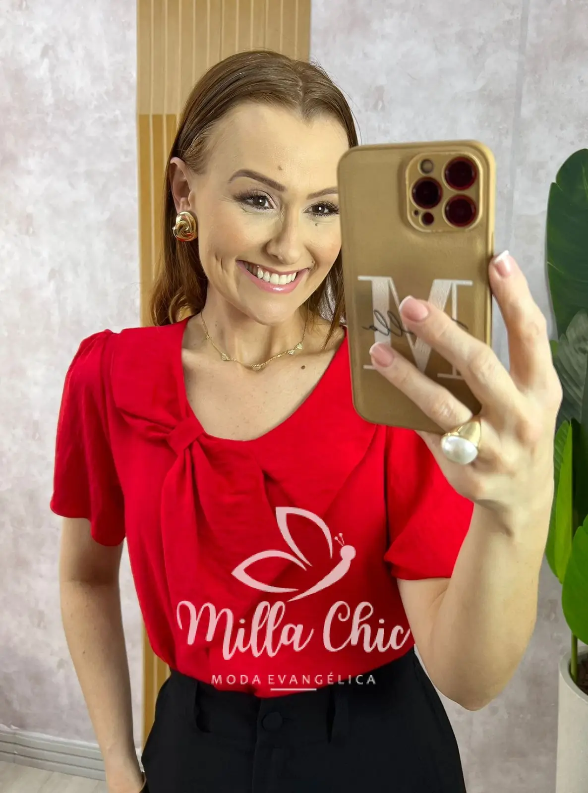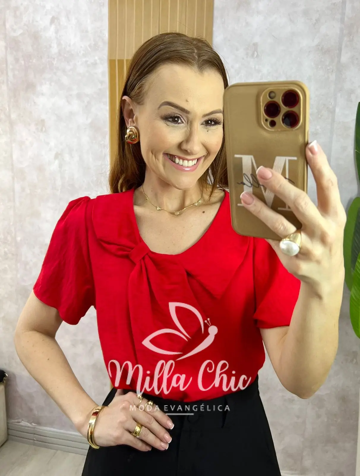 Blusa Júlia com Laço em Viscosarja - Vermelha - Milla Chic