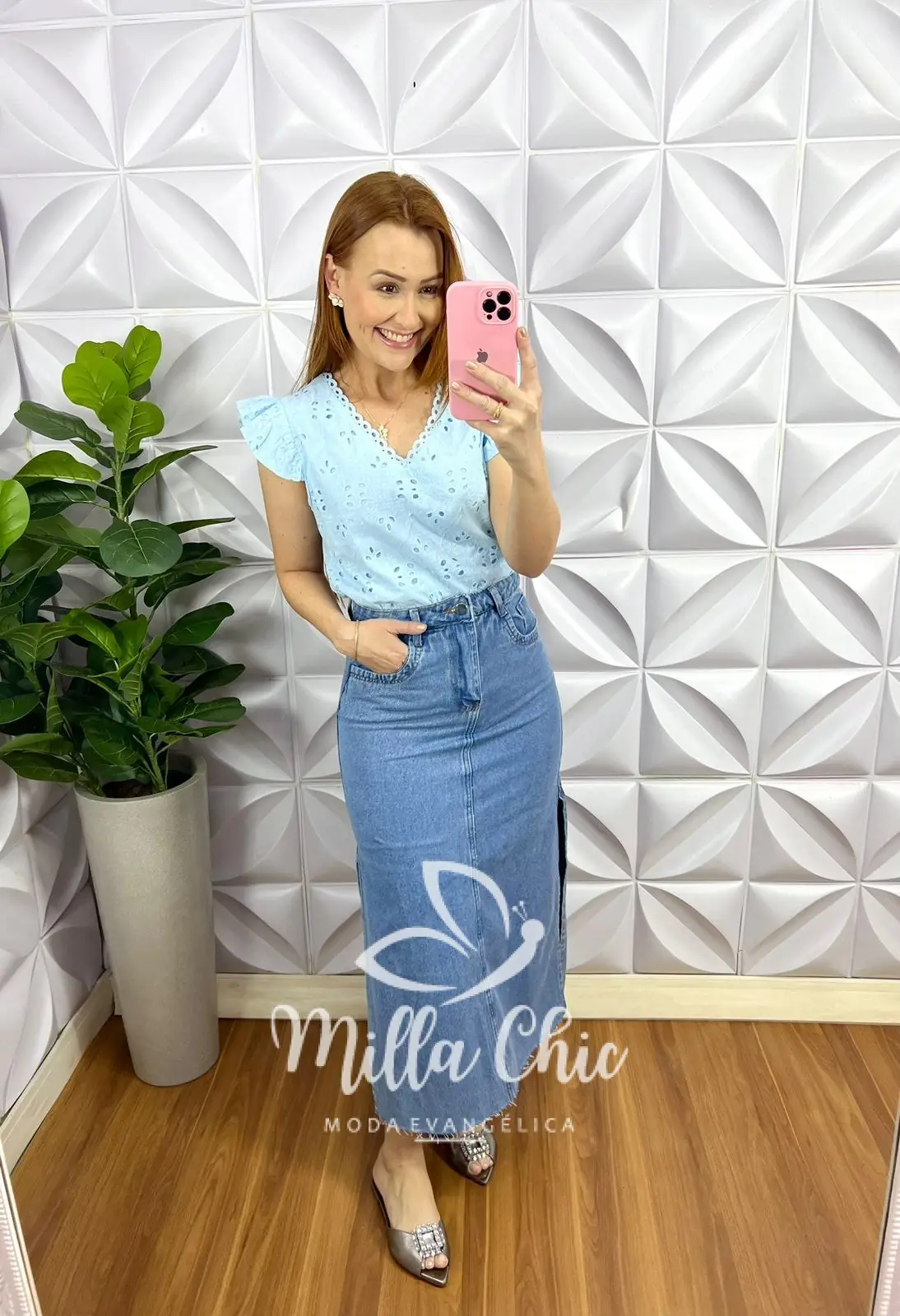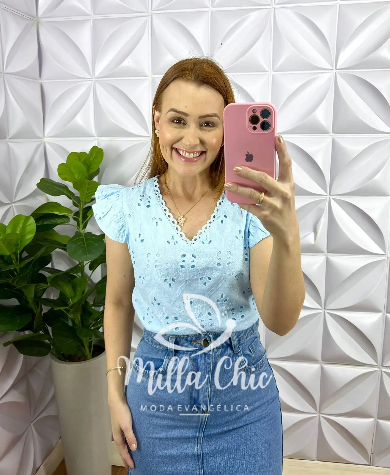 Blusa Laise Algodão Manga Babadinho Anastácia – Azul