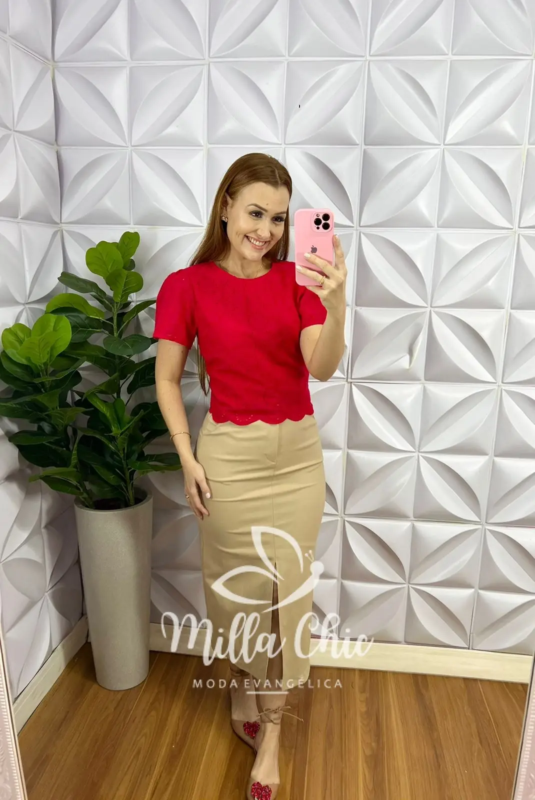 Blusa Lasie 100% Algodão Trabalhada De Coração Lorrayne – Vermelha