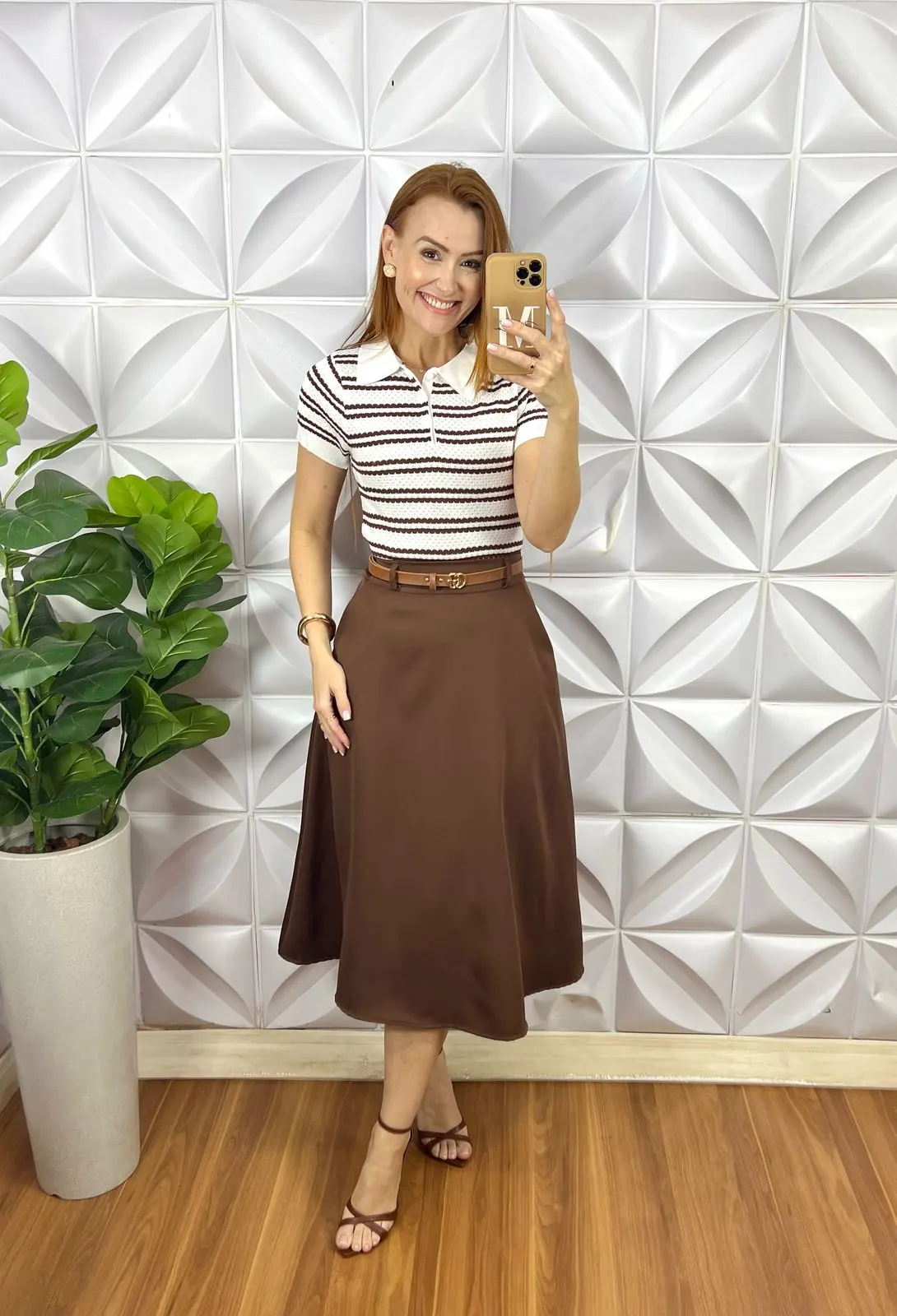 Blusa Lauren Tricot Modal – Marrom e Branca