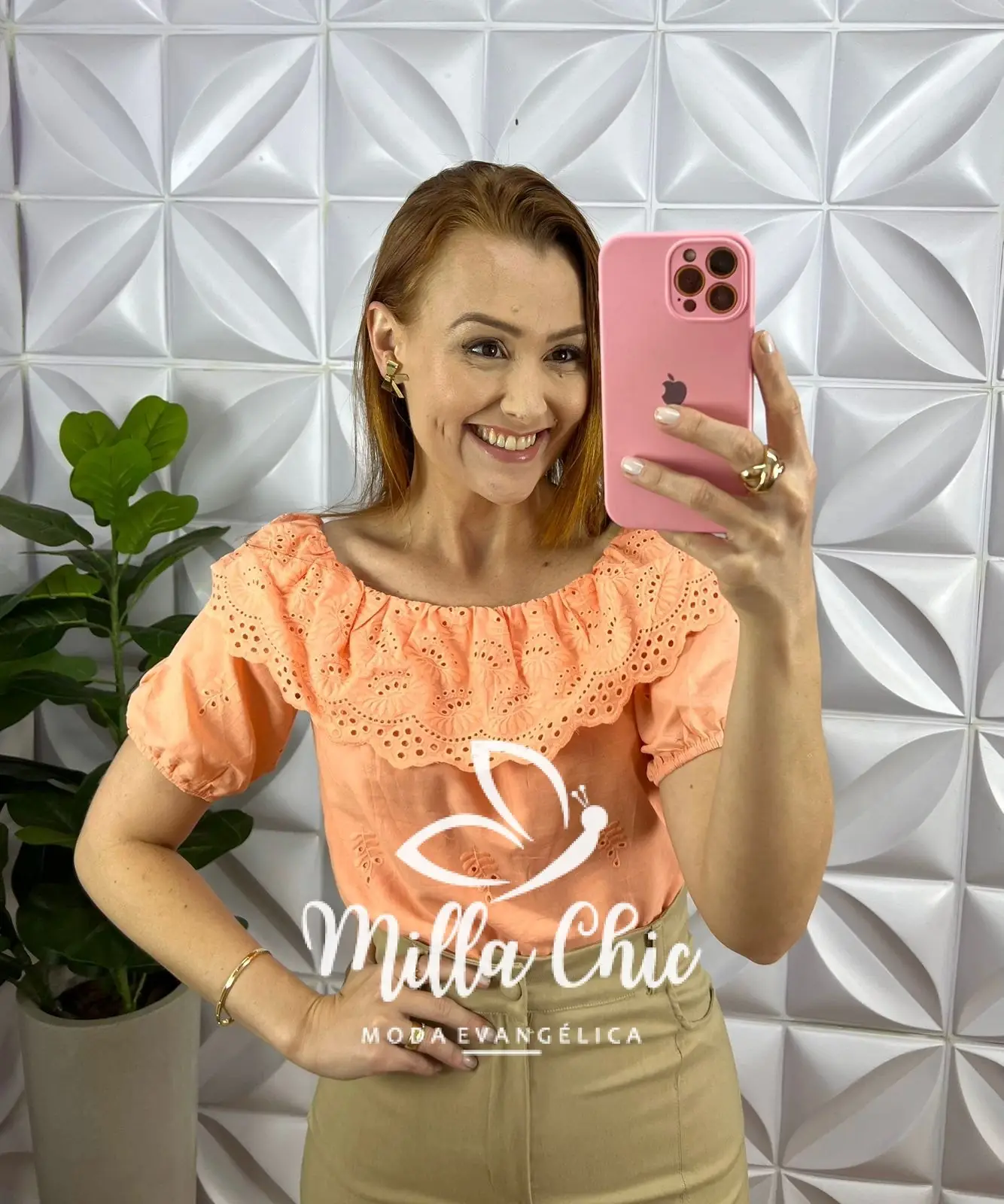 Blusa Lesie De Algodão Babadinho Na Gola Tereza – Pêssego