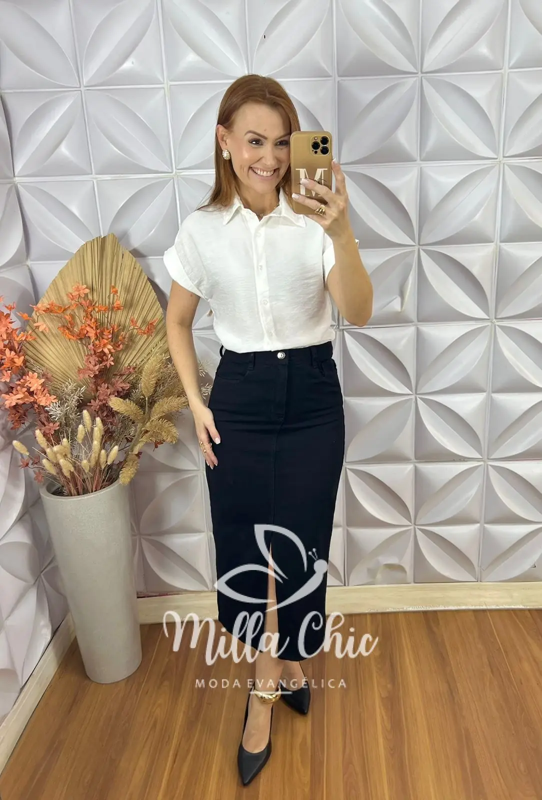 Blusa Lídia é um estilo de camisa com gola botões funcionais e gola .