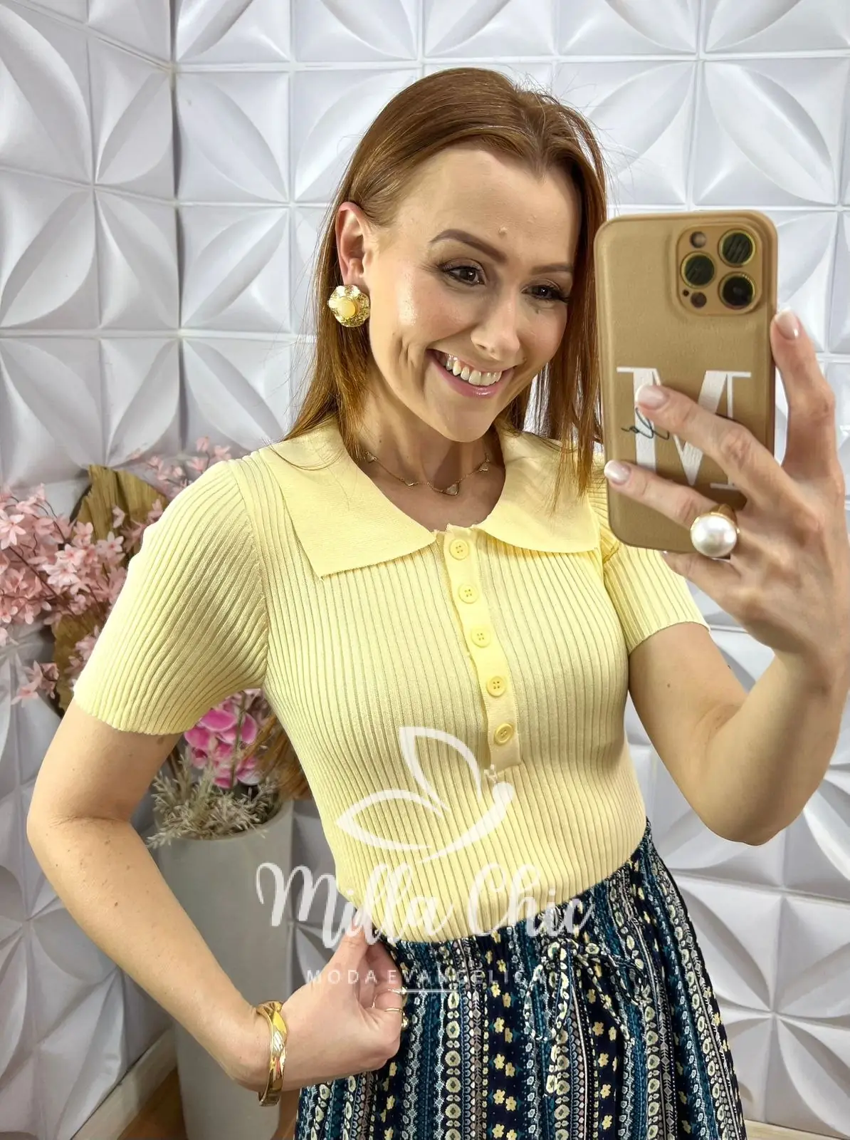 Blusa Lidiane Em Tricot Modal - Amarelo Manteiga - Milla Chic
