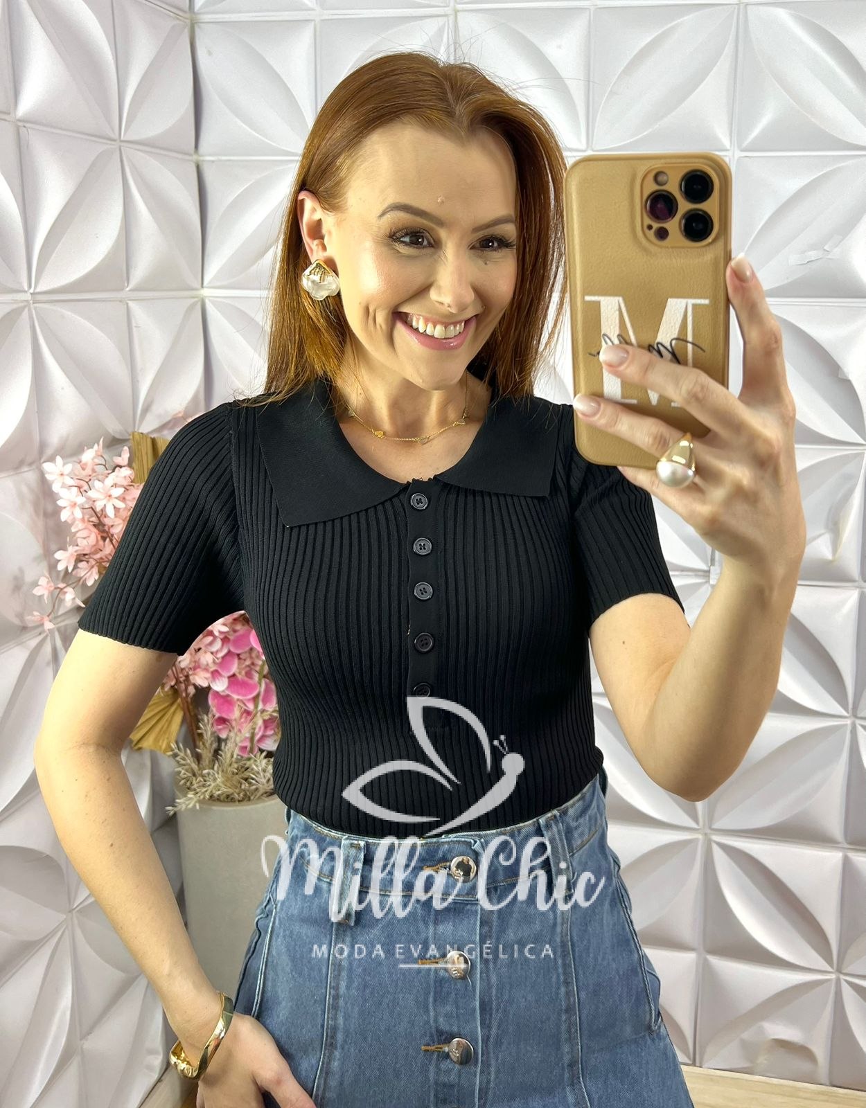 Aquela blusa estilosa para deixarem seus looks mais elegantes e sofisticados. Confeccionada em tricot modal verão. Muito confortável e fresca. E o detalhe que faz toda diferença é a gola e os botões funcionais da cor da blusa que traz toda a elegância para ela.
