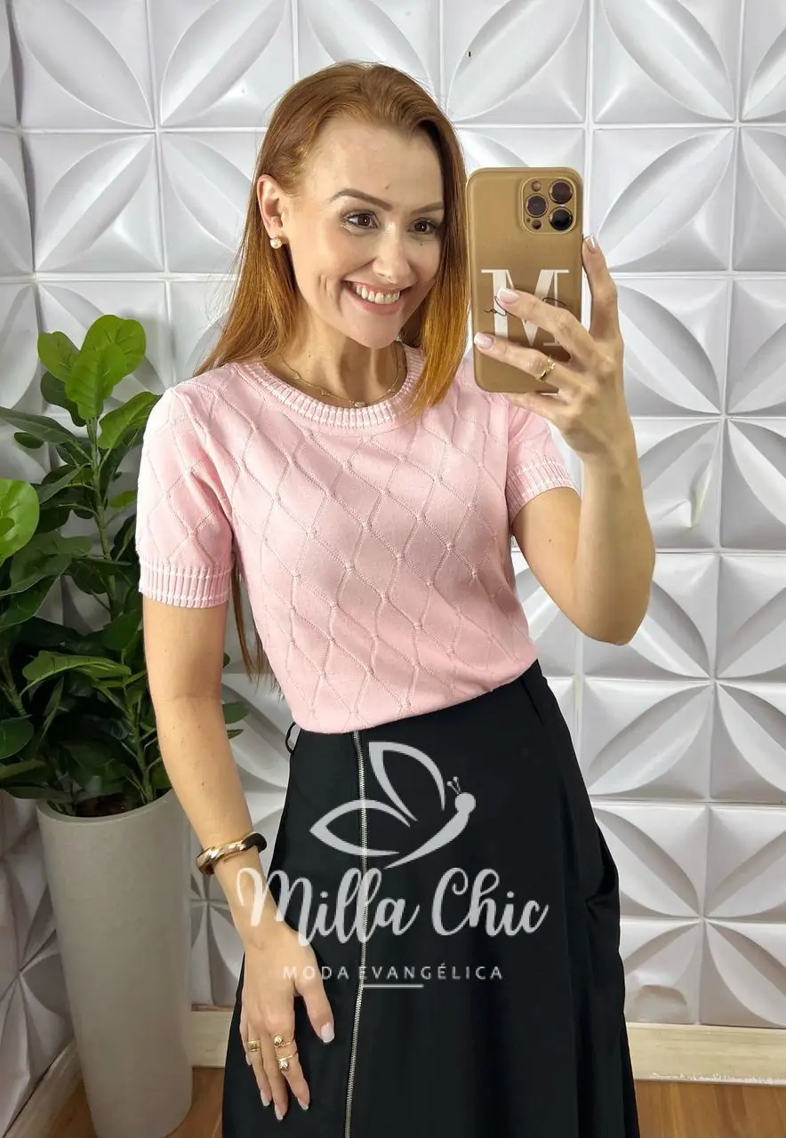 Ela deixa o look mais chic. E esse modelo tem o tricot todo trabalhado. E os prespontos na gola e na manga deixando ela muito charmosa.