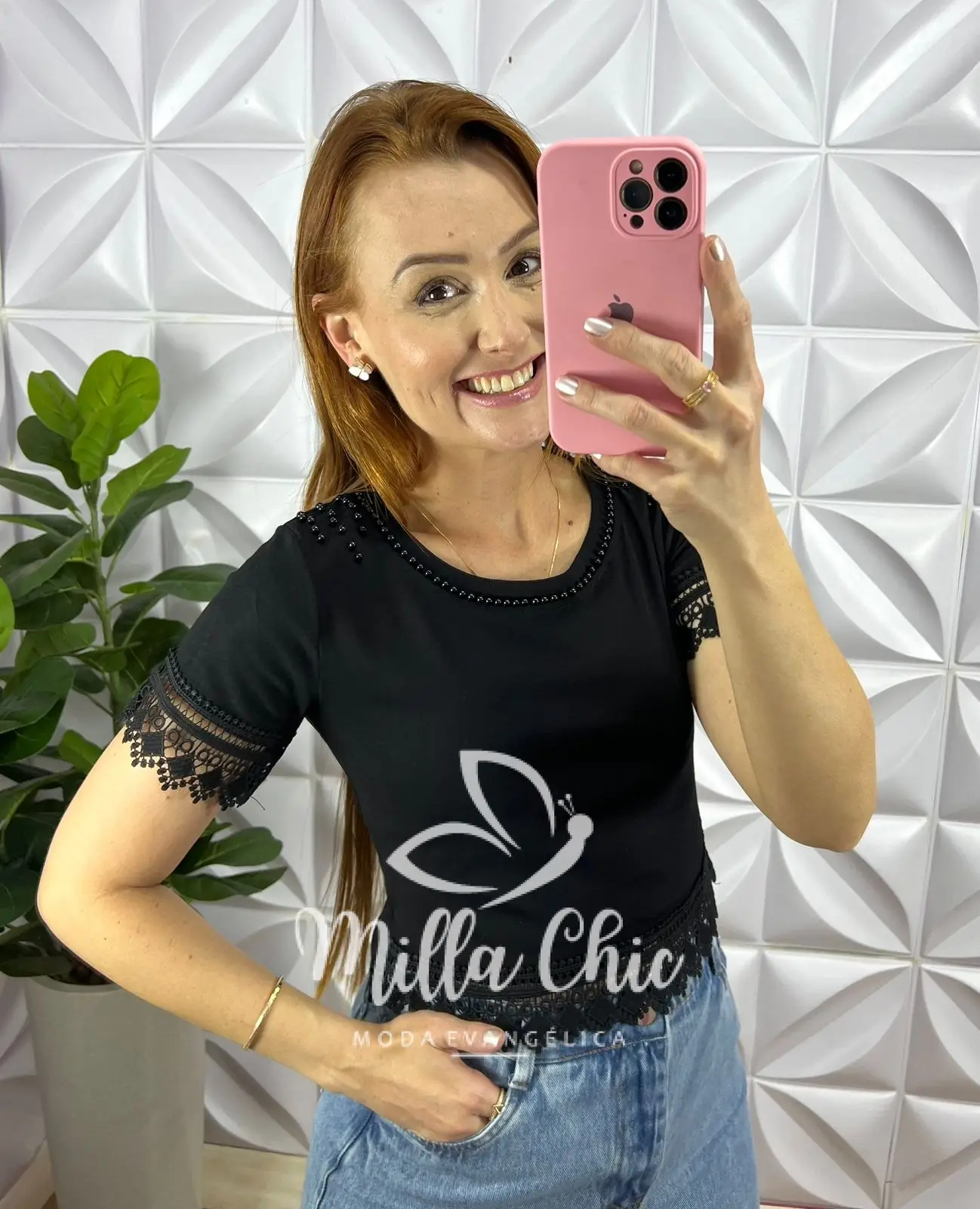 Blusa Malha De Algodão Com Bordados Perola e Guipper Alanis - Preto - Milla Chic