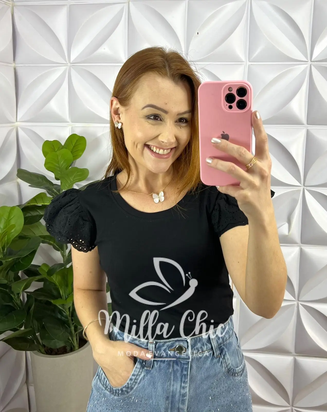 Blusa Malha De Algodão Manga Babadinho Leise Lana – Preta