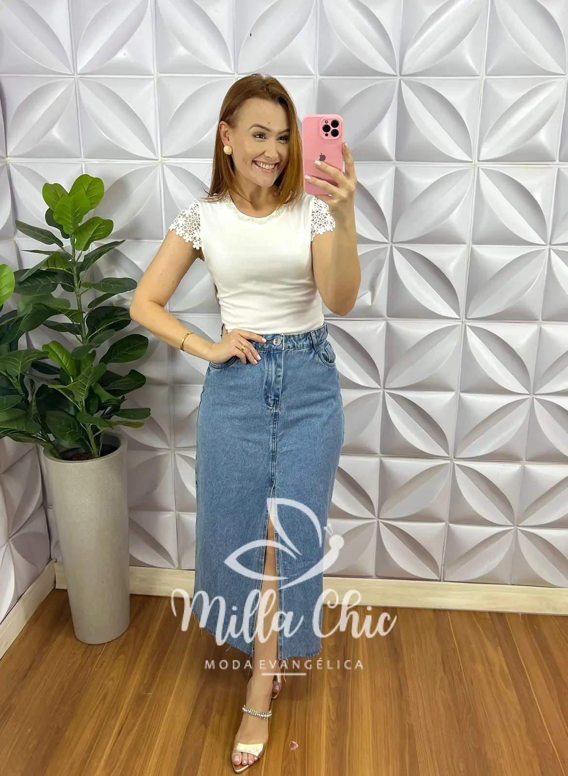 Blusa Malha De Algodão Manga De Guipper Bordado De Perola Paula - Branca - Milla Chic