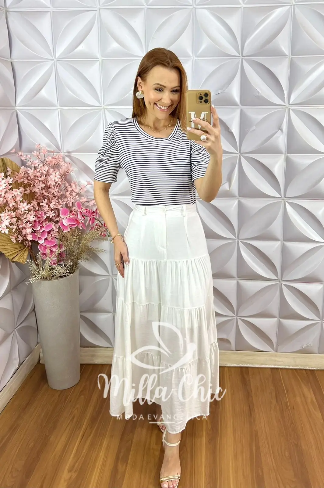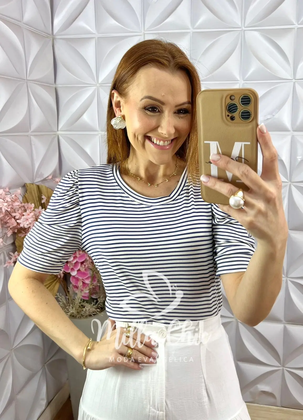 A padronagem é de listras que transforma o look deixando mais chic, estiloso e moderno.