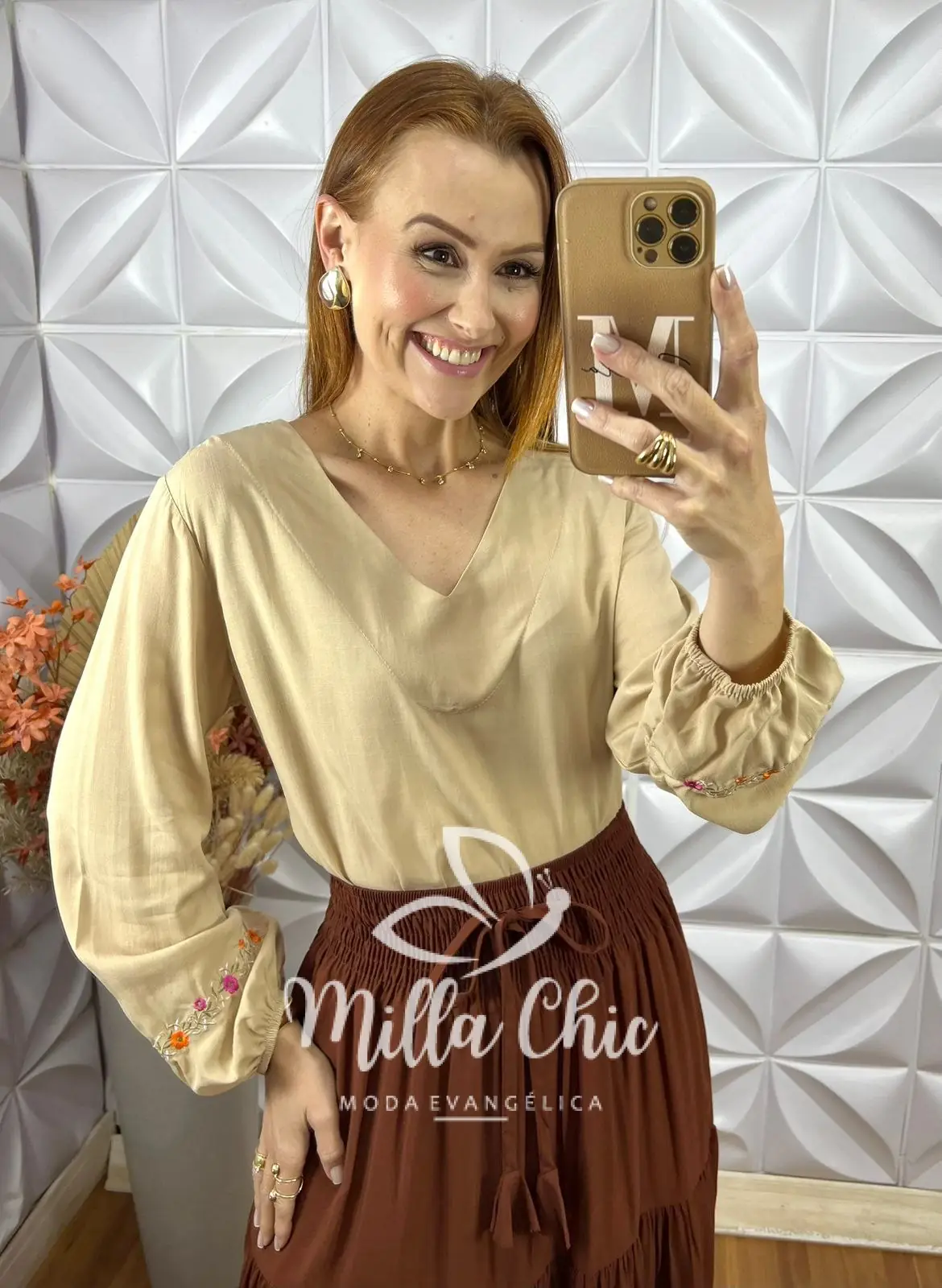 A blusa de manga longa Mariane é uma peça atemporal, cheia de estilo e muito elegante .