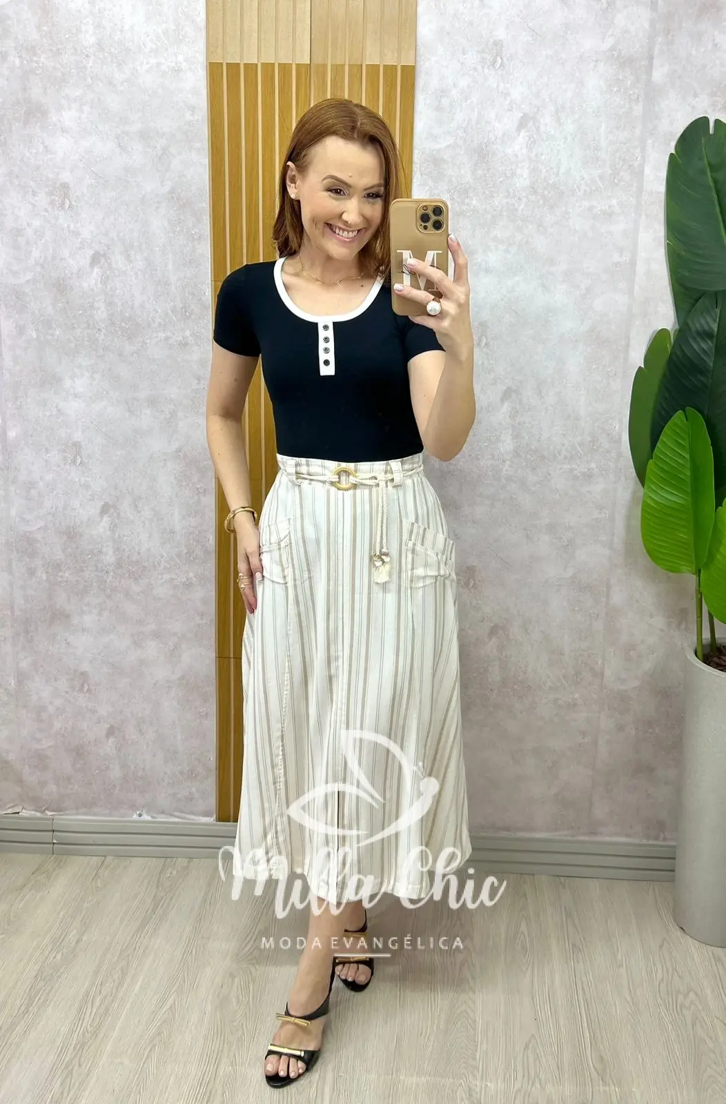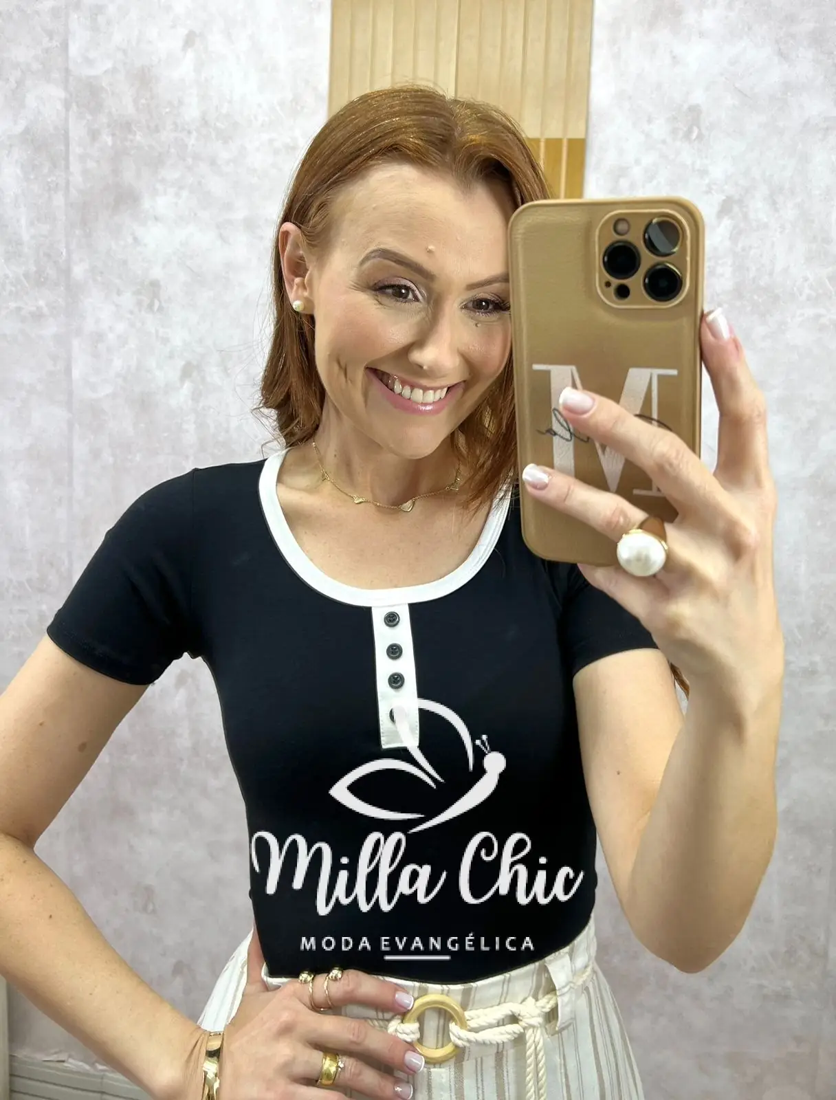 Aquela blusa confortável e estilosa para looks casuais ficarem mais lindos . Aquela blusa indispensável no guarda roupas . Fica linda com uma saia jeans . Confeccionada em viscolycra. Muito confortável e fresca. E o detalhe que faz toda diferença e deixa ela linda é o patô em linho com os botões . É o que traz toda a elegância para essa blusa. Os botões não são funcionais .