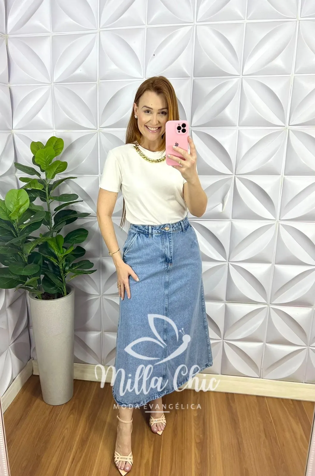 Saia Jeans Mídi Evase Com Bolsos Debora - Jeans - Milla Chic