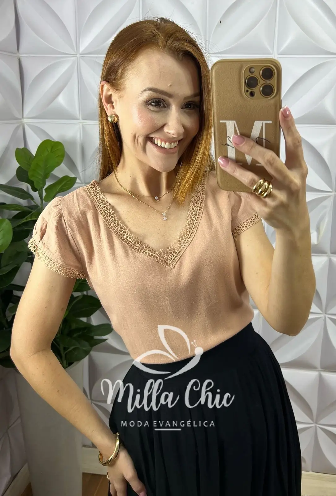 Blusa Mônica Cambraia Linho - Marrom - Milla Chic
