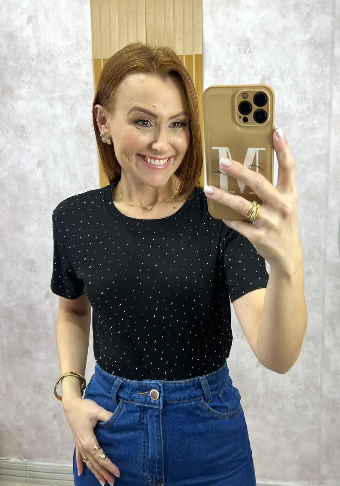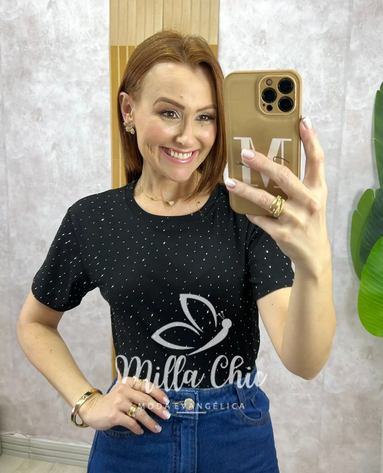 Aquela blusa confortável e estilosa para looks casuais ficarem mais elegantes e sofisticados. Confeccionada em malha 100% algodão. Muito confortável e fresca. E o detalhe que faz toda diferença e deixa ela linda, delicada e muito chic é a aplicação em strass . É o que traz toda a elegância para essa blusa.