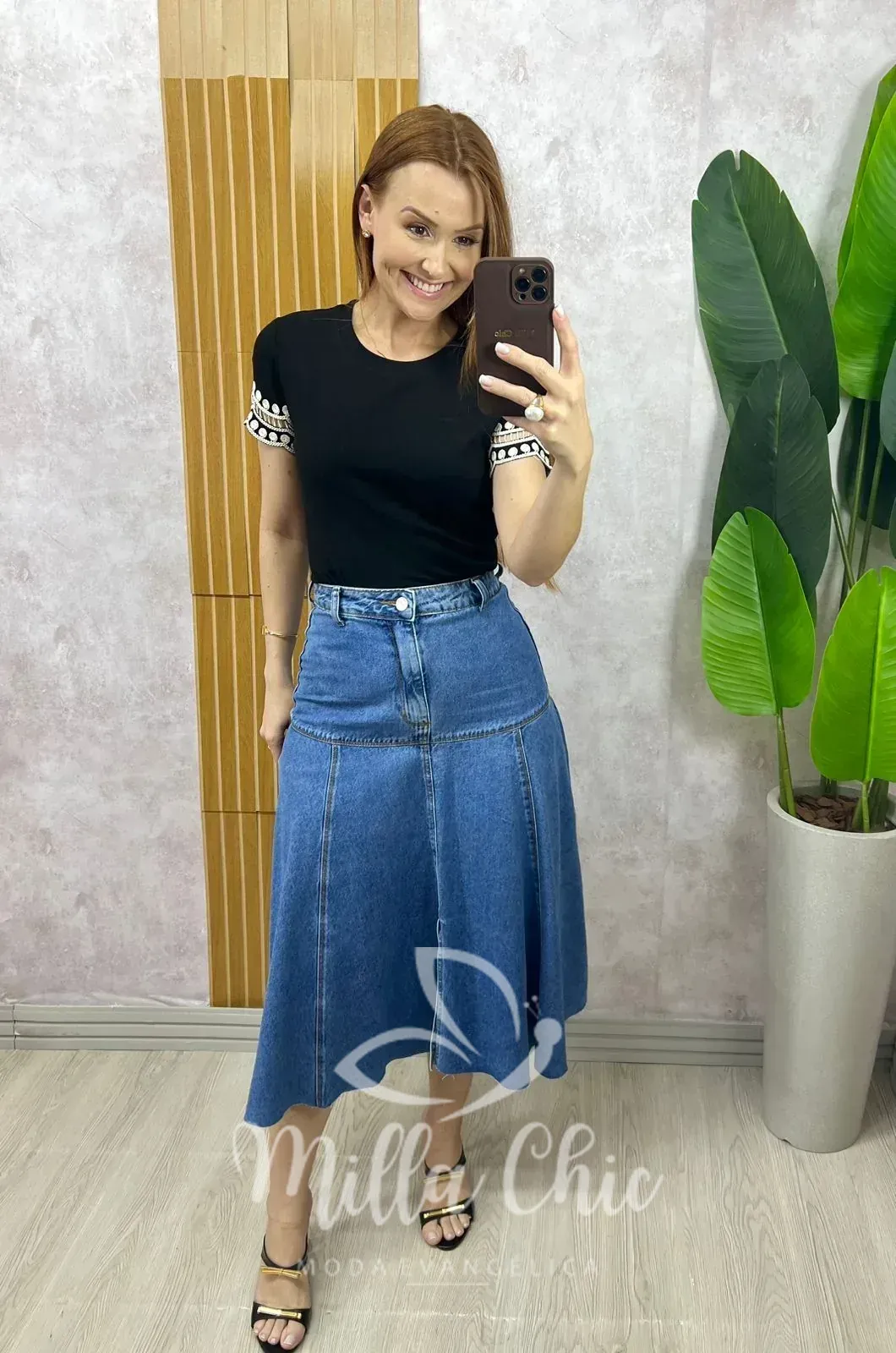 Essa é blusa Natália. Uma blusa minhas irmãs muito confortável e estilosa para looks casuais ficarem mais elegantes e sofisticados . Confeccionada em canelado 100% algodão . Muito confortável e fresca . E o detalhe que faz toda diferença é o bordado ao redor da manga em cordone que deixa muito linda .