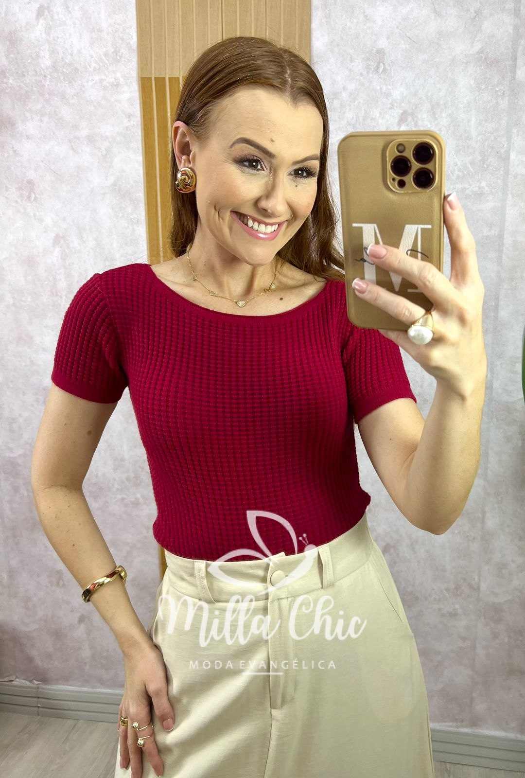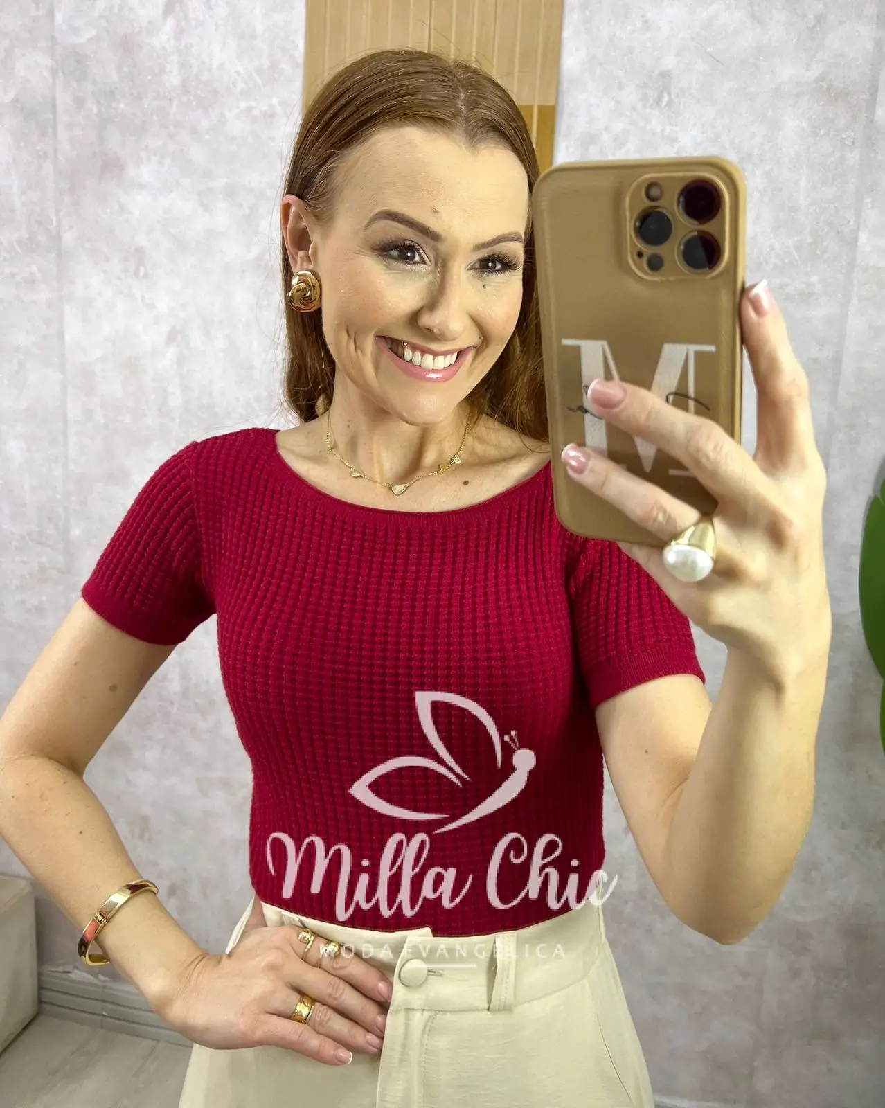 Blusa Neide em Tricot - Bordô - Milla Chic