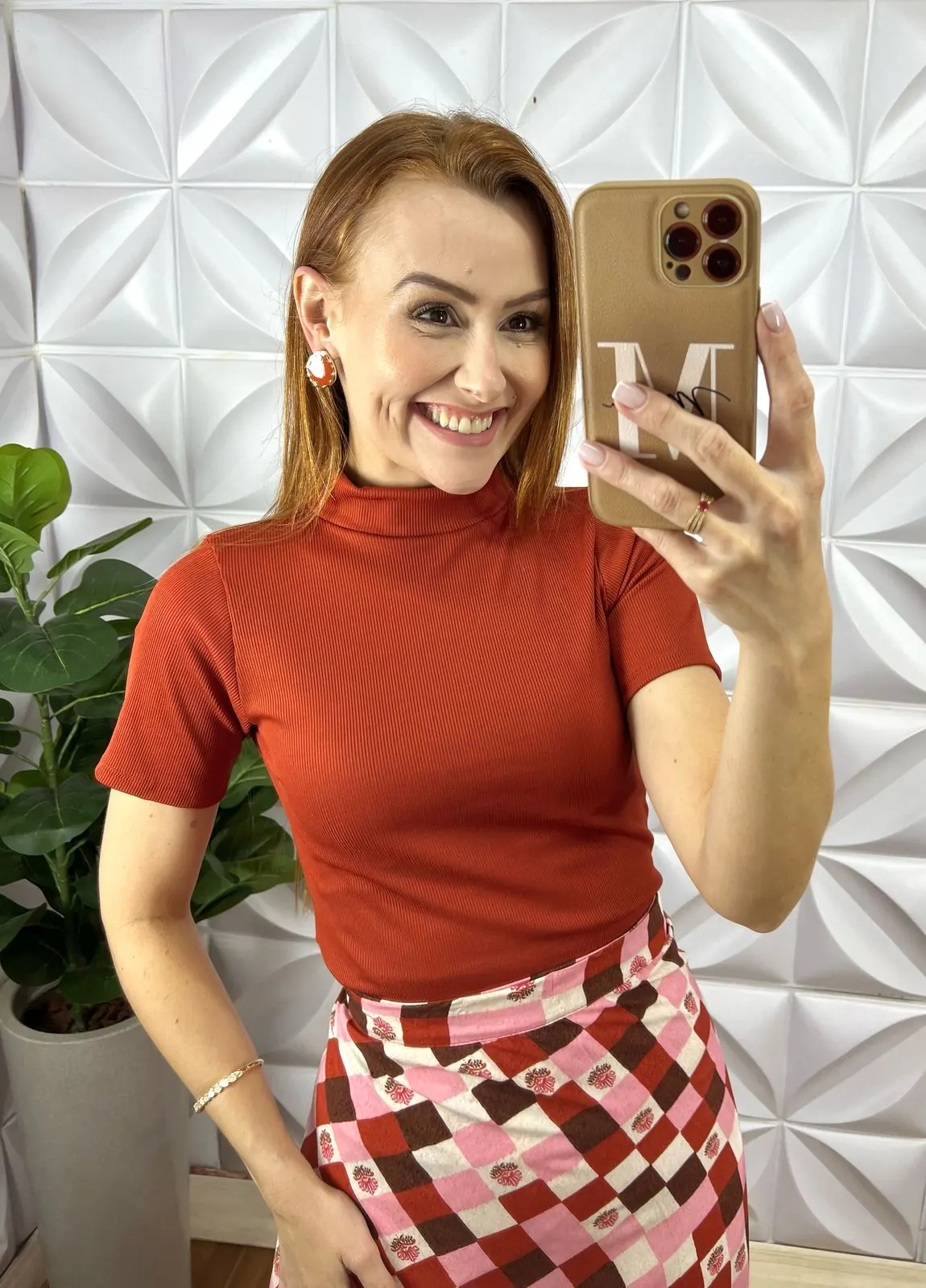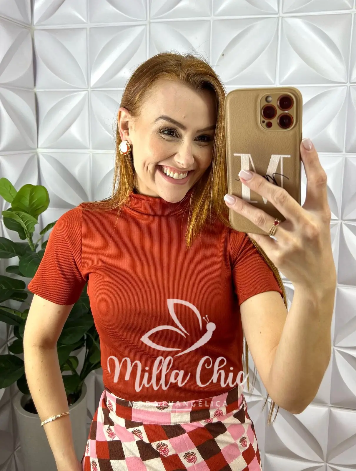 Tecido: Malha Canelada com Elastano | Composição: 96% Poliéster| 4% Elastano.